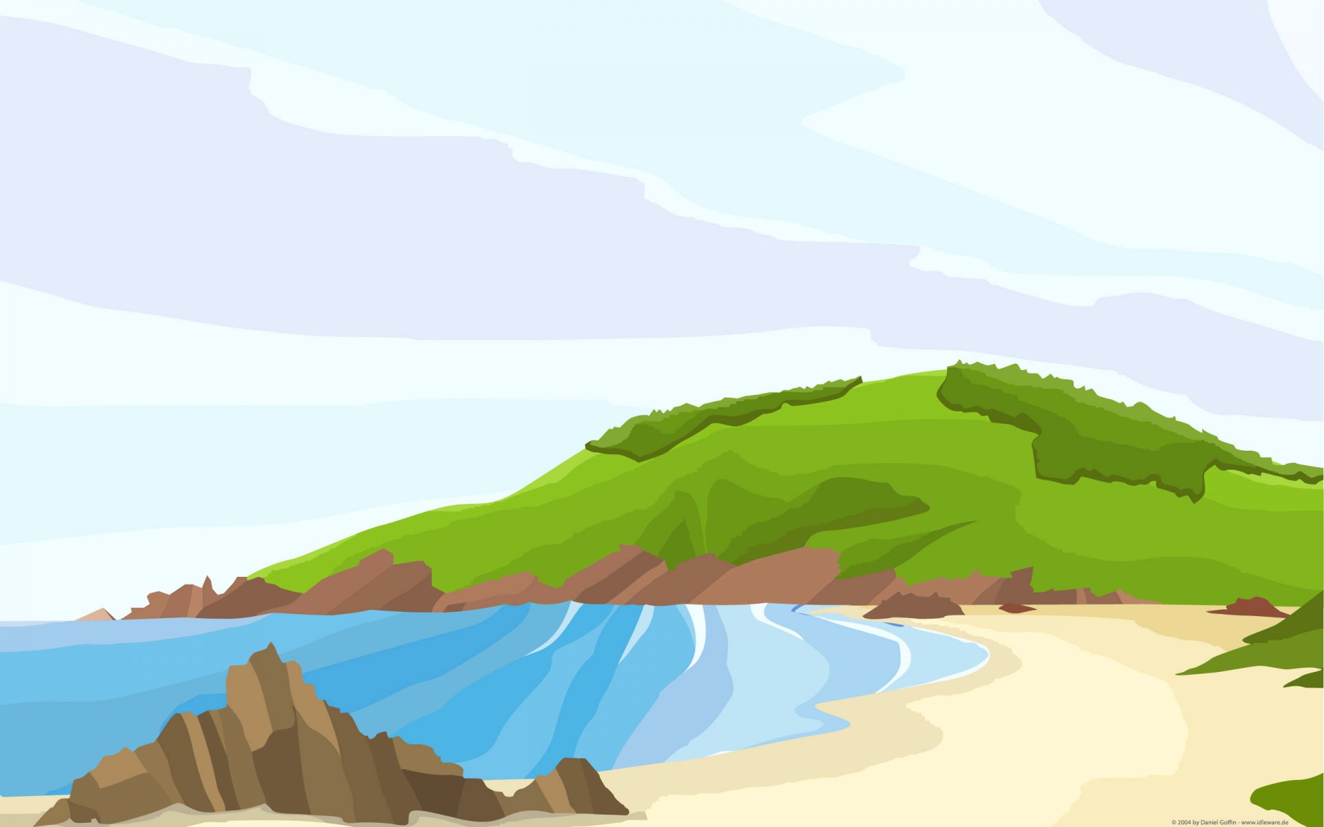 Paesaggio vettoriale del lago vicino alle montagne verdi - sfondo del desktop