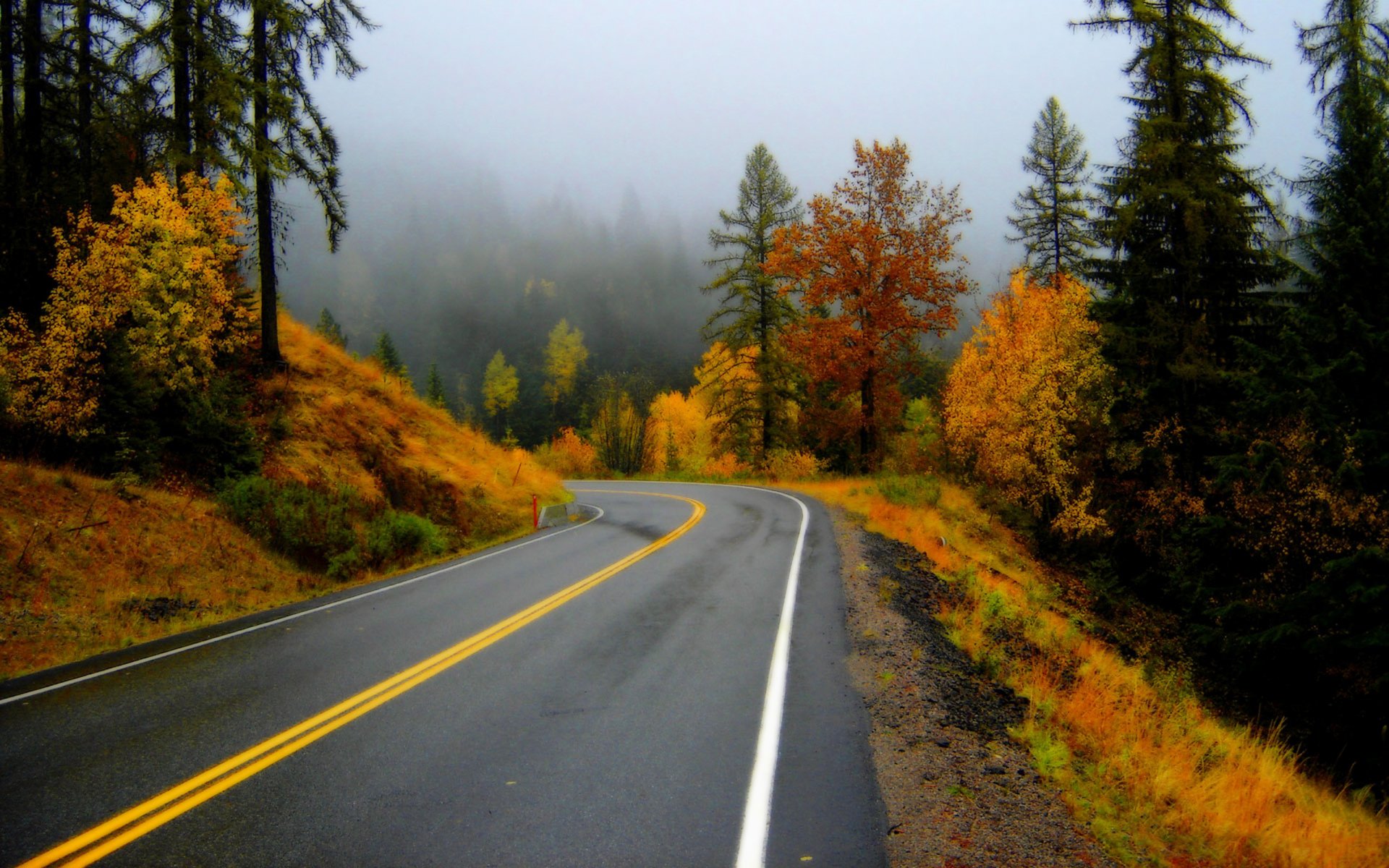 Strada e pittoresca foresta autunnale - sfondo del telefono