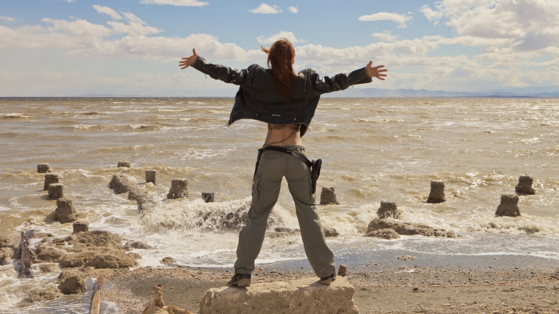 Foto della ragazza da dietro vicino al mare - sfondo del desktop