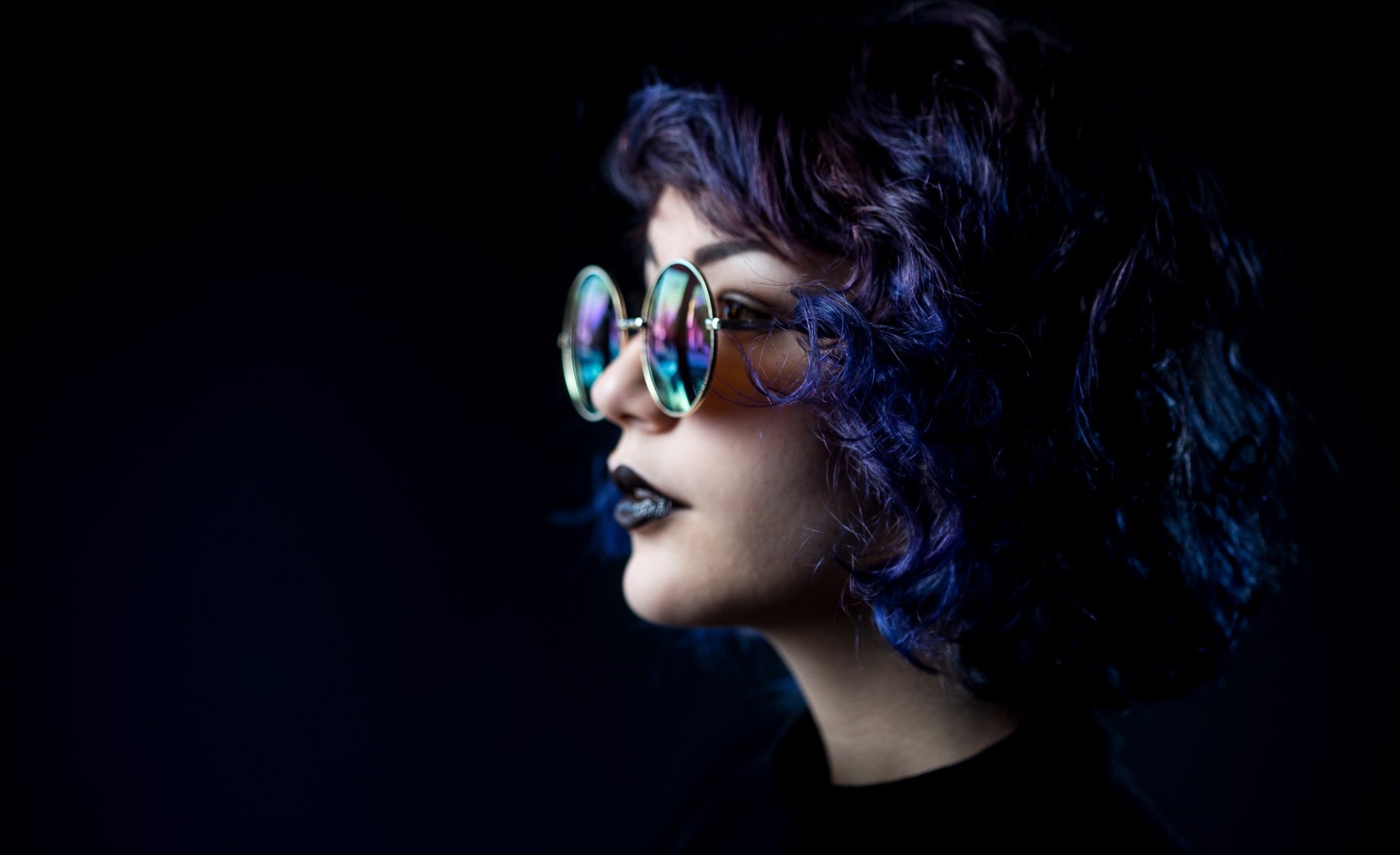 Ragazza su sfondo nero con capelli insoliti - sfondo del desktop