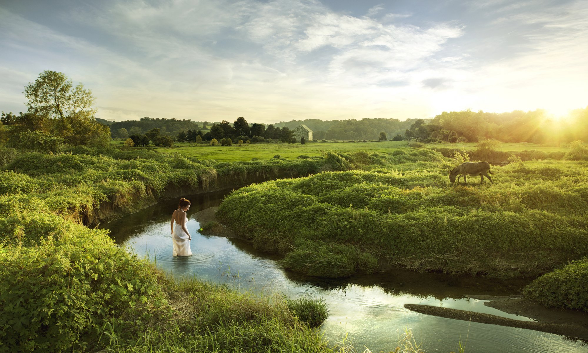 Tag:ragazza, natura, asino, asino, animale, acqua, erba
