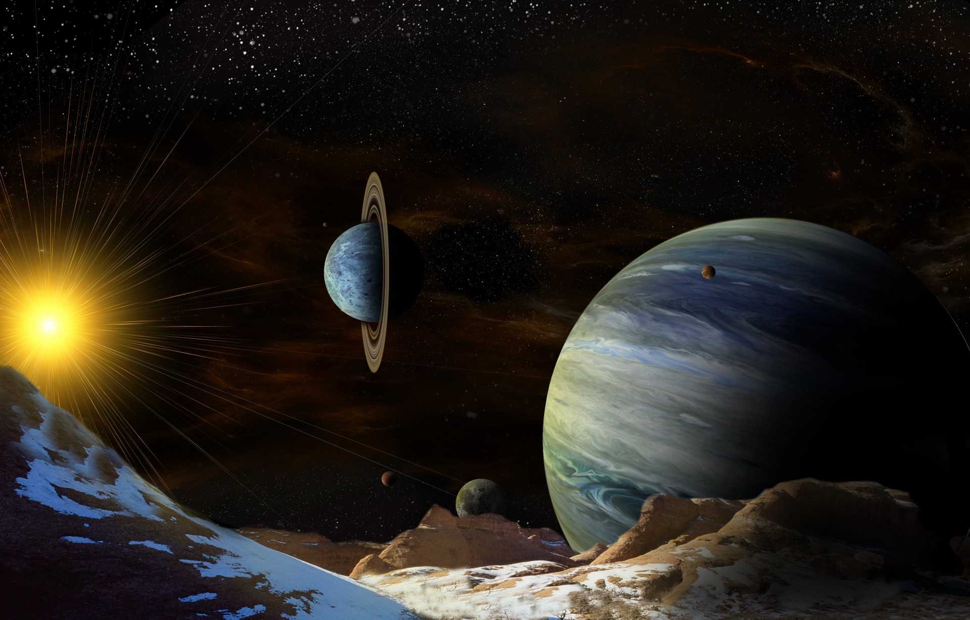 Cosmicaart con pianeti e sole - sfondo del desktop