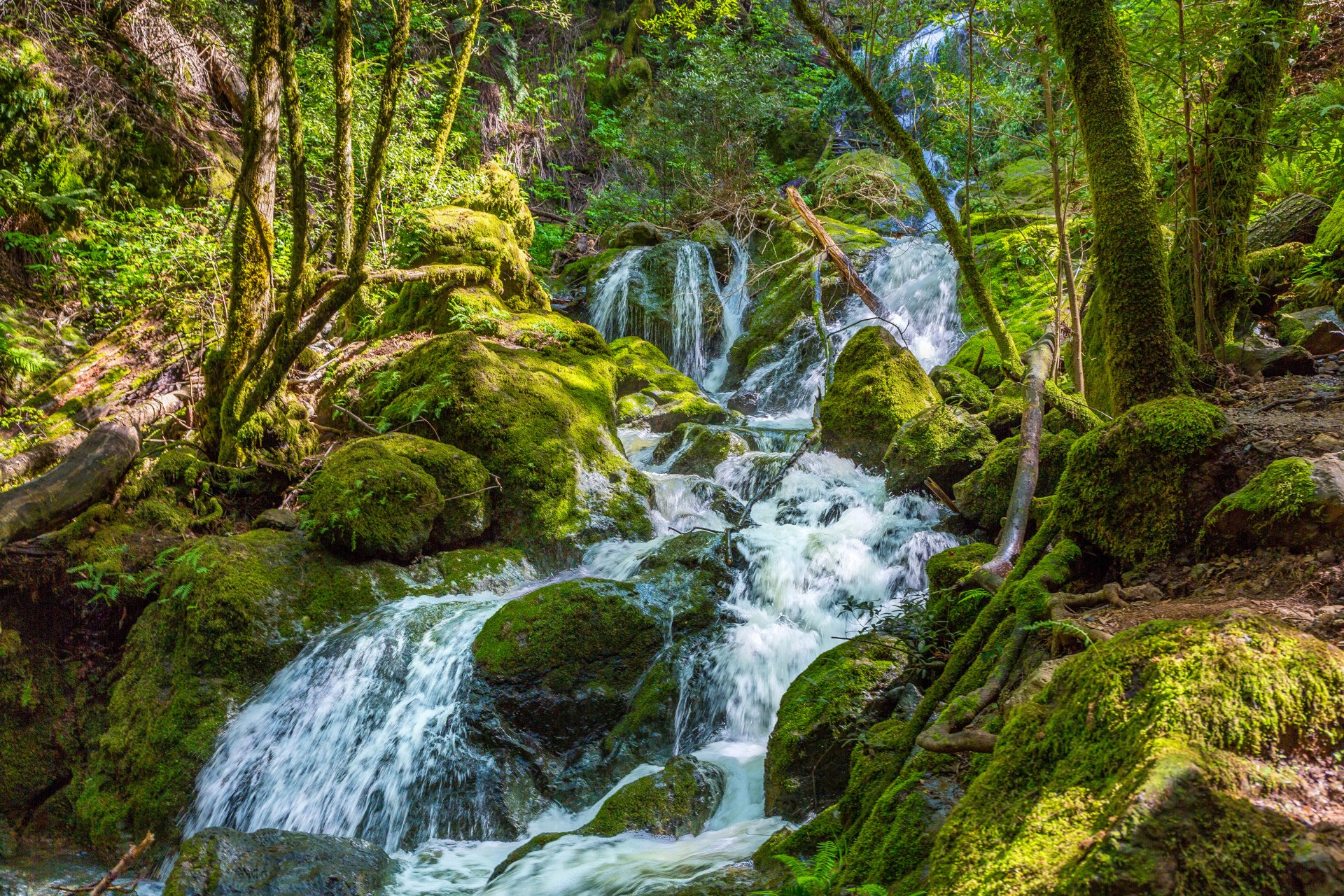 Il torrente della foresta scorre in un ruscello nella forestaIl torrente della foresta scorre in un ruscello nella foresta