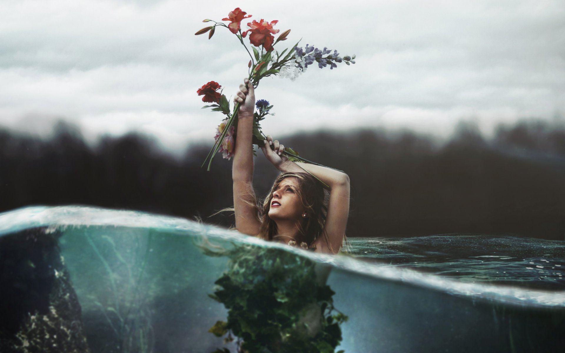Servizio fotografico in stile nudo. ragazza in acquaServizio fotografico in stile nudo. Ragazza in acqua