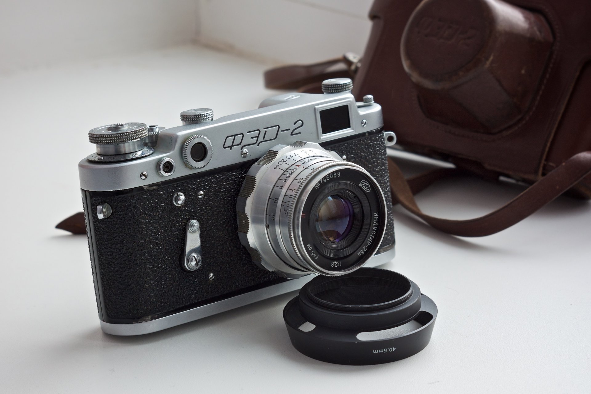 Obiettivo della fotocamera a fisarmonica zenith su un moncone su uno sfondo di erbaObiettivo della fotocamera a fisarmonica Zenith su un moncone su uno sfondo di erba
