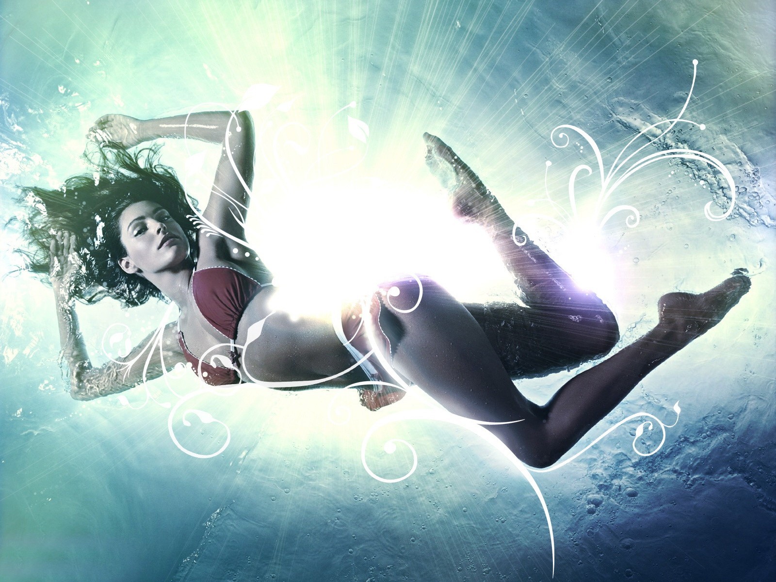 Ragazza in costume da bagno nuota nel mare