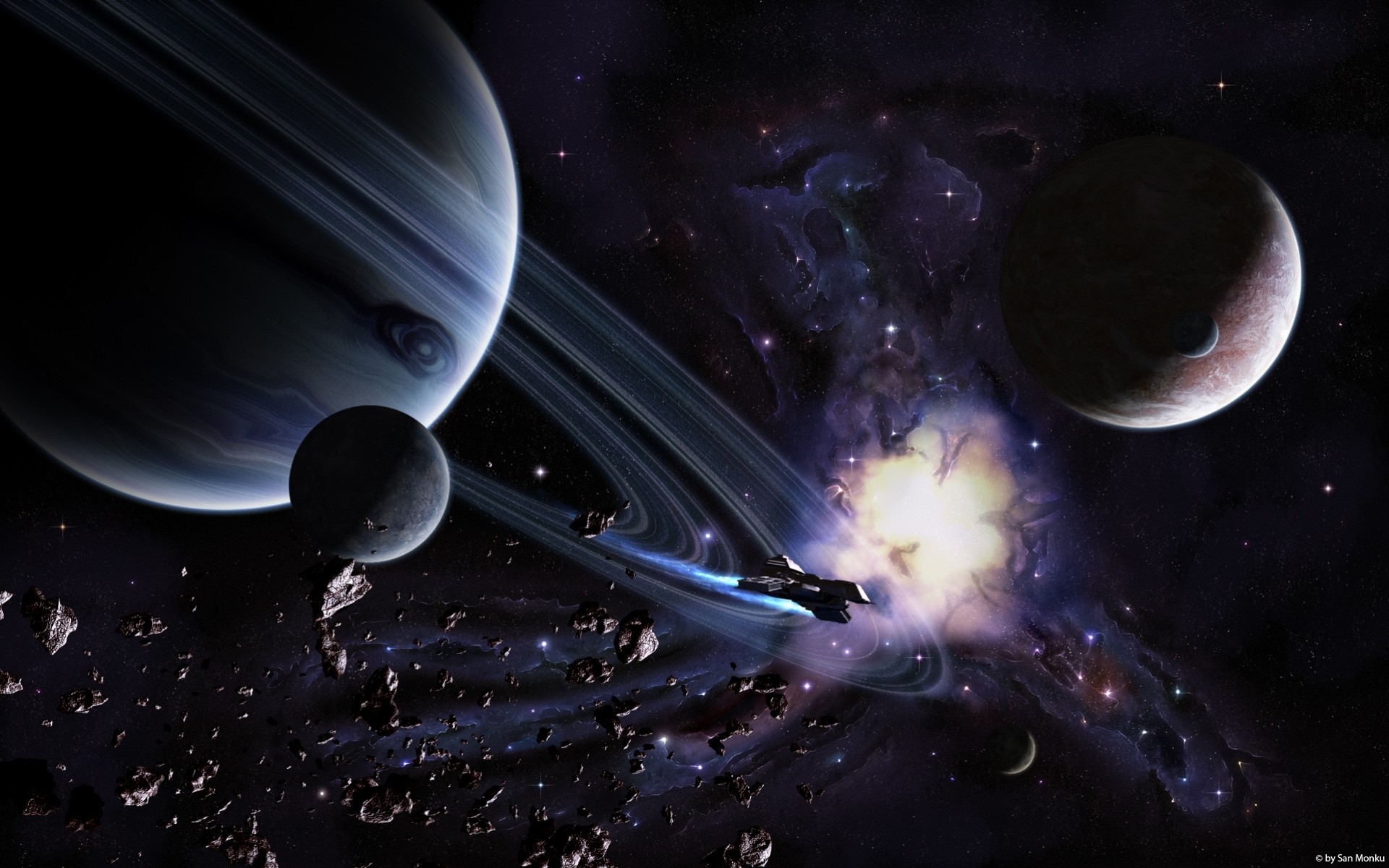 Paesaggio cosmico: il sole illumina il pianeta con gli anelli