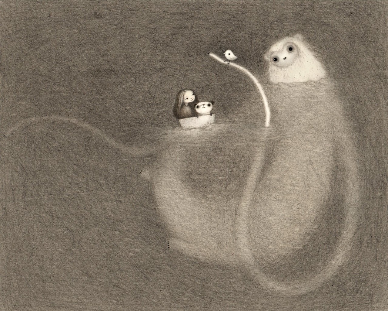 Schizzo dell'artista-creatura e barca