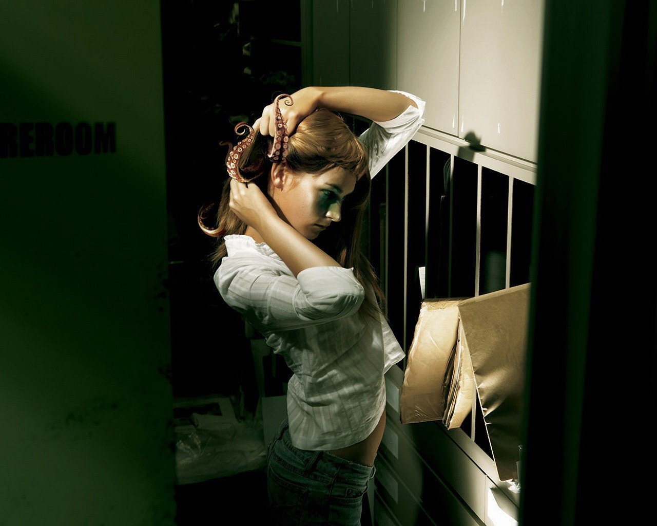 Ragazza in posa a seno nudo