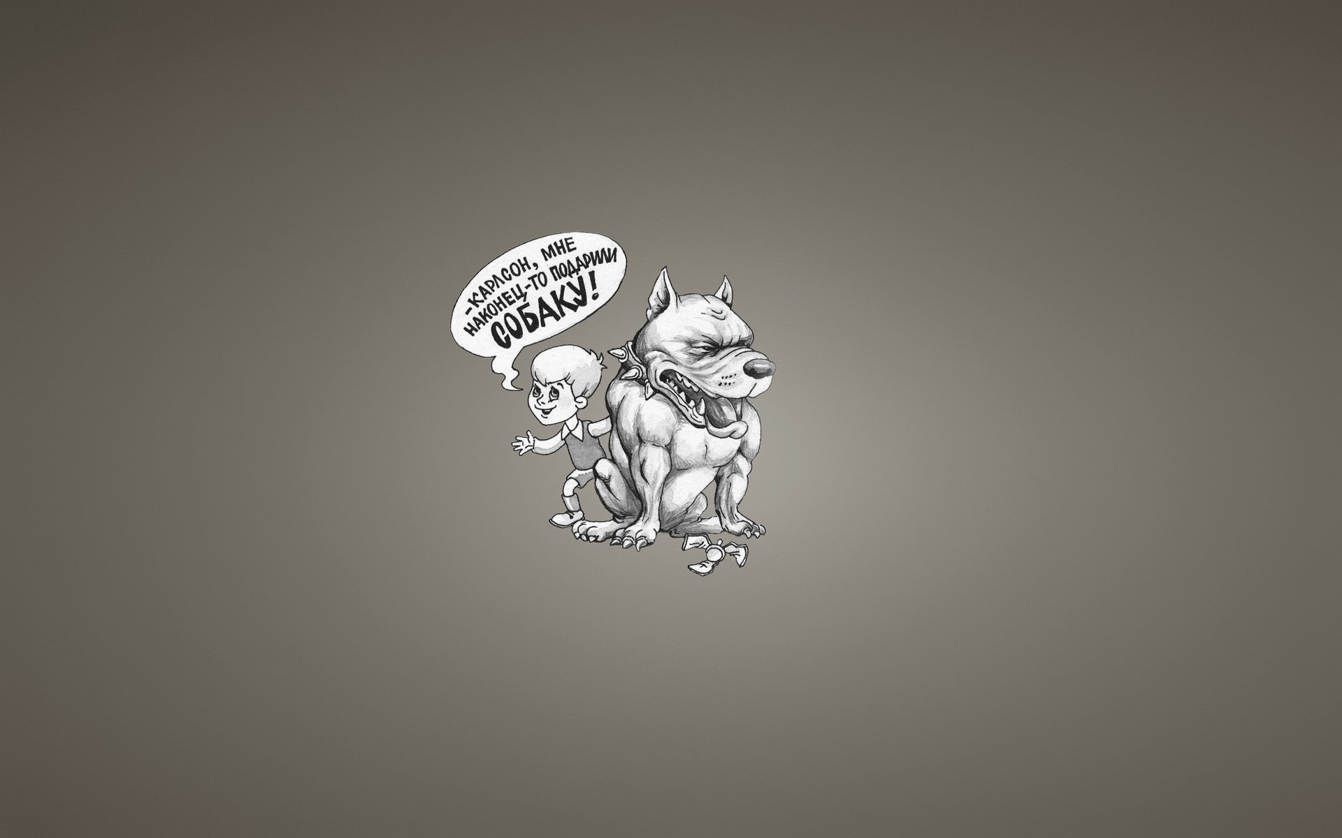 Immagine divertente del bambino e carlson con il caneImmagine divertente del bambino e Carlson con il cane