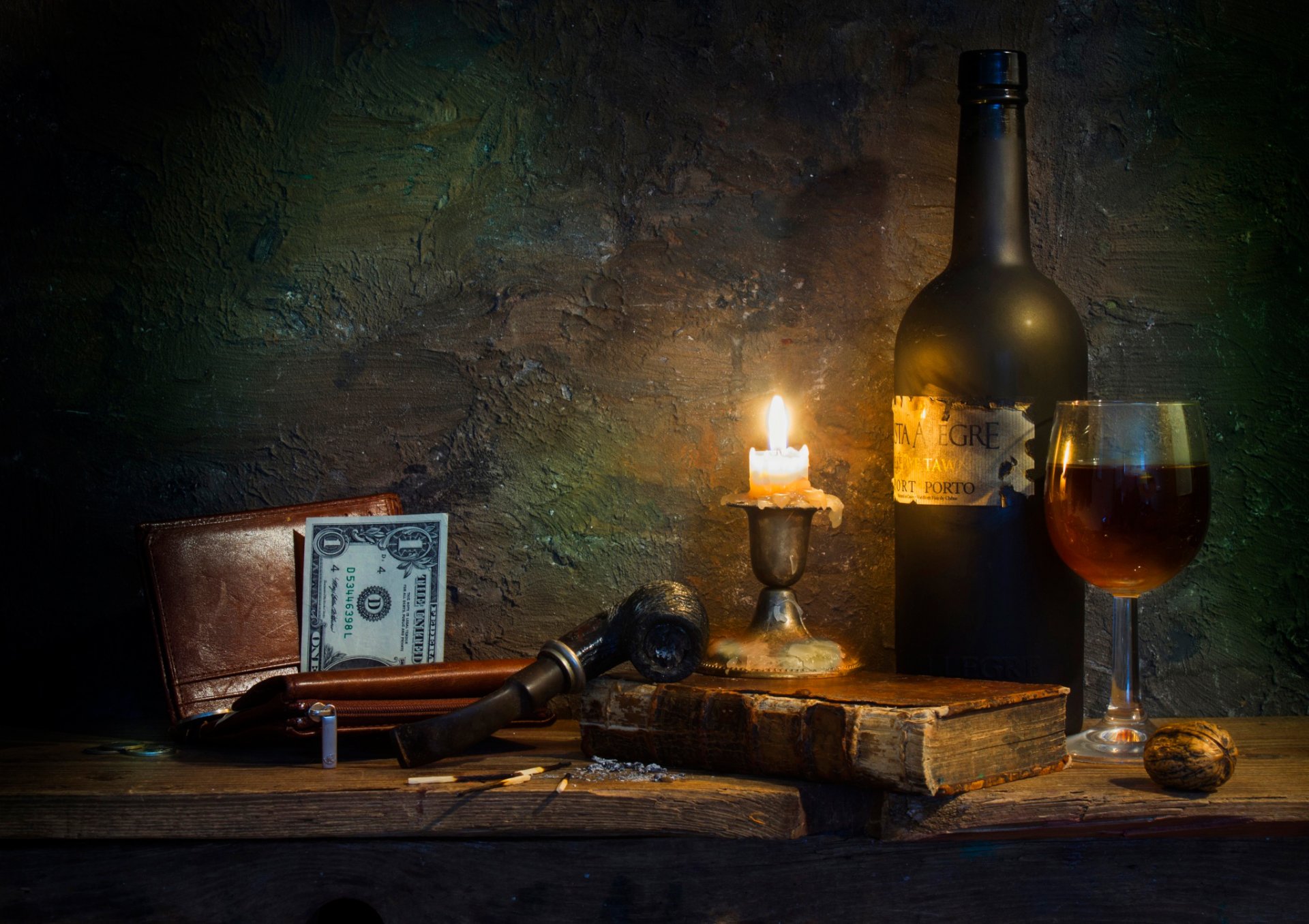 Natura morta maschile con tubo e banconota