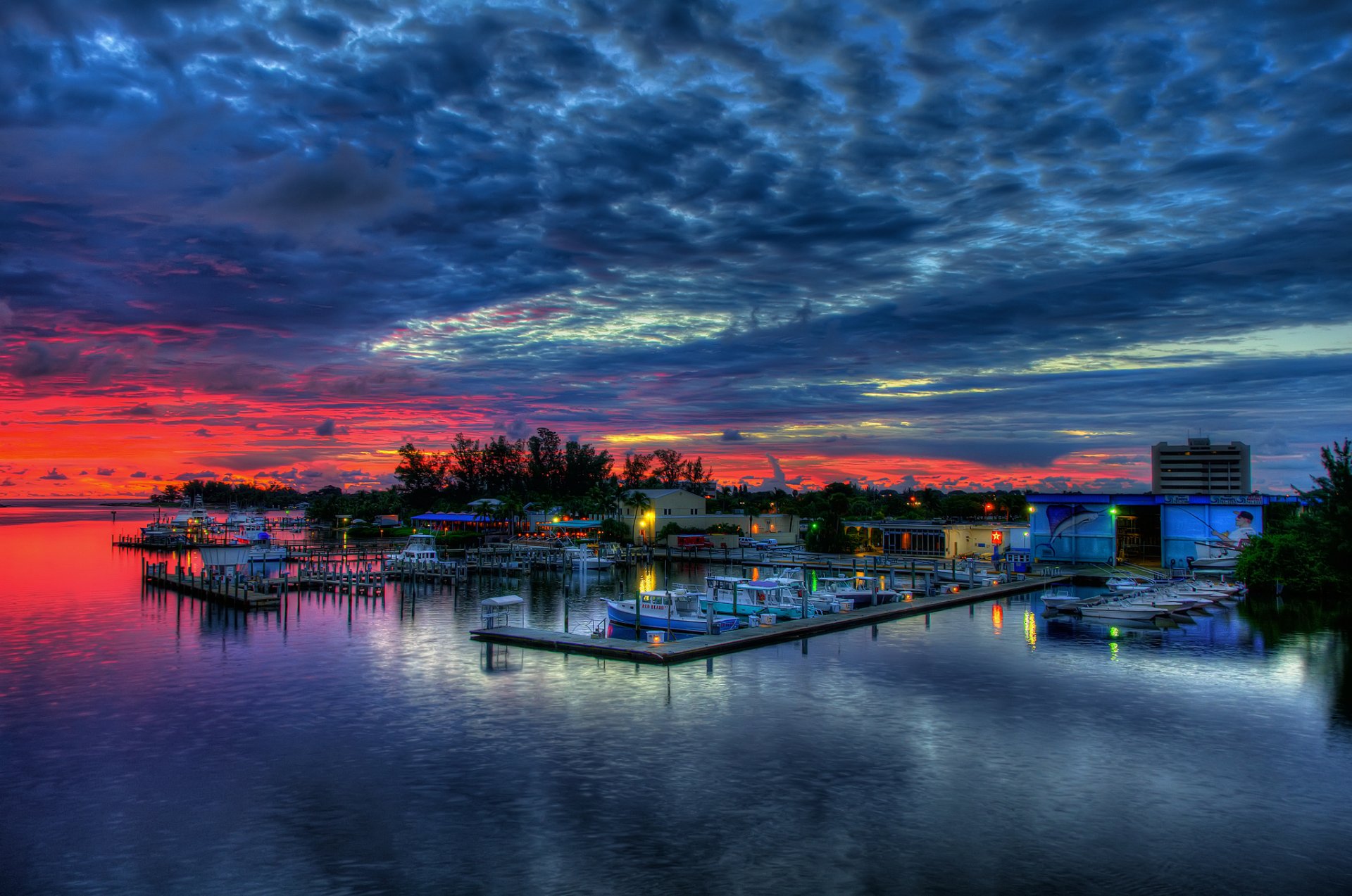 Bellissimo panorama dell'architettura degli stati nella baia con yacht