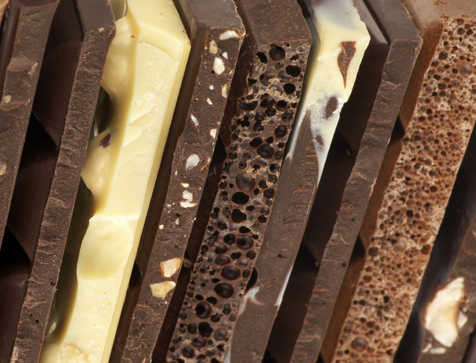 Barretta di cioccolato. dolci con un cucchiaio di cacaoBarretta di cioccolato. Dolci con un cucchiaio di cacao