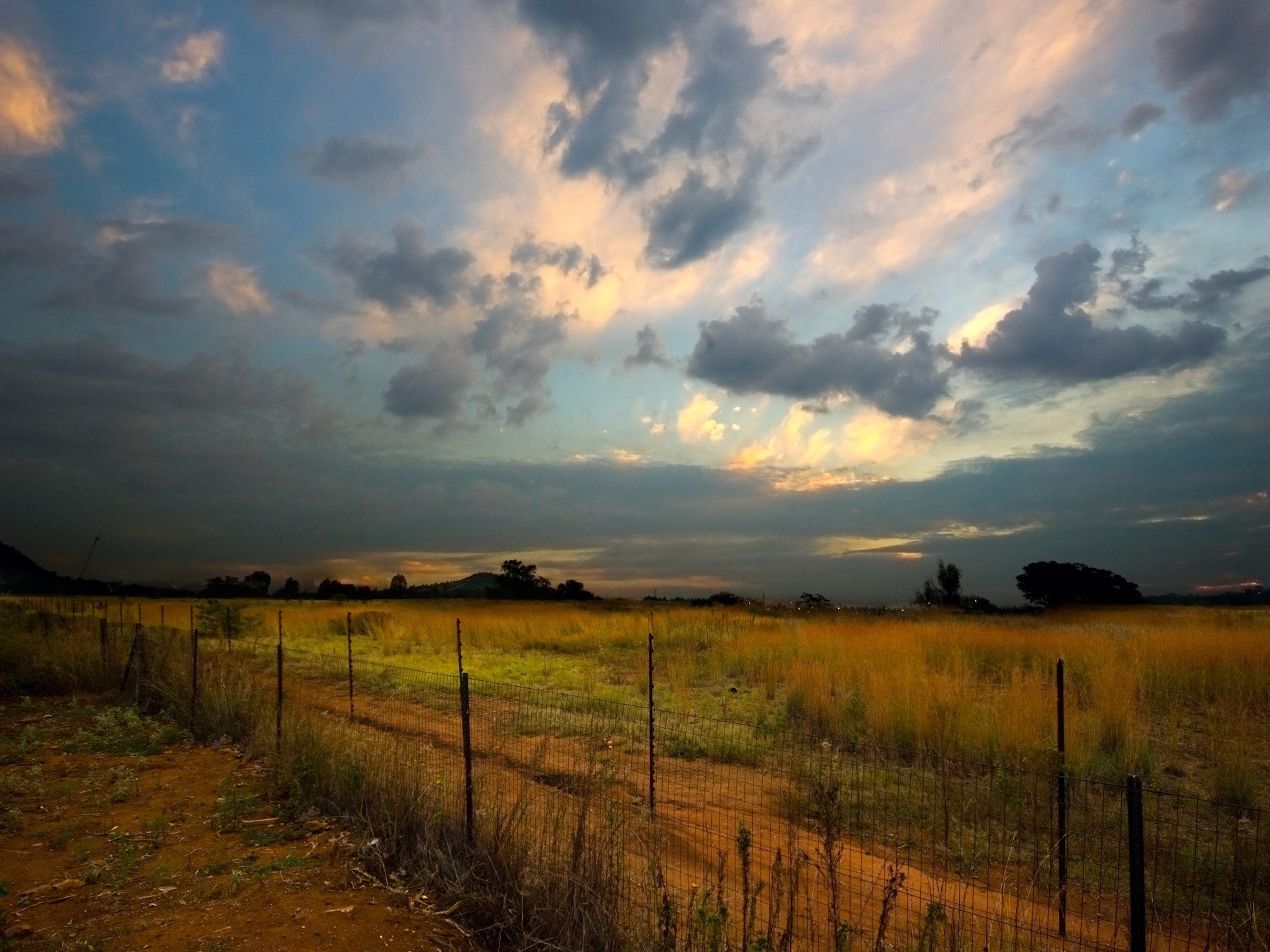Recinzione in un deserto serale sotto le nuvole grasseRecinzione in un deserto serale sotto le nuvole grasse