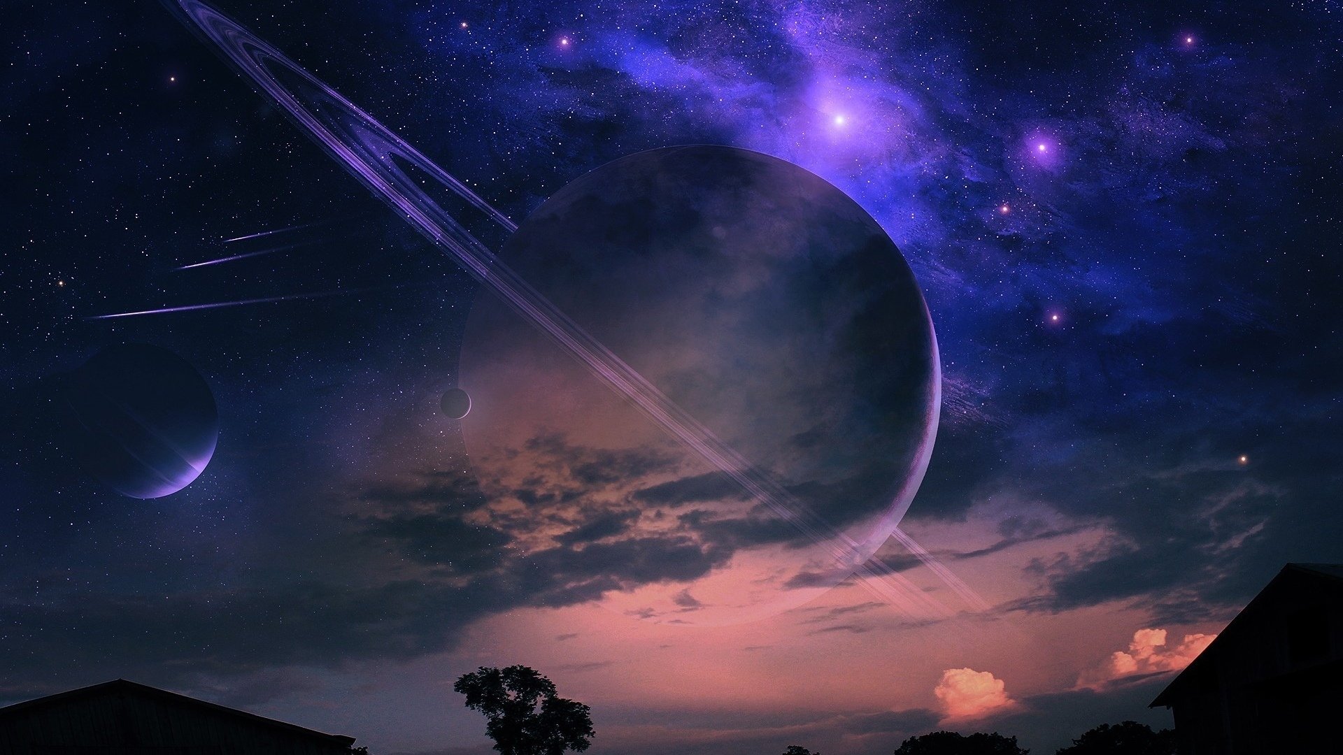 Motivo vegetale di una foglia e fiori con una palla magica al centro su uno sfondo nero e bluMotivo vegetale di una foglia e fiori con una palla magica al centro su uno sfondo nero e blu