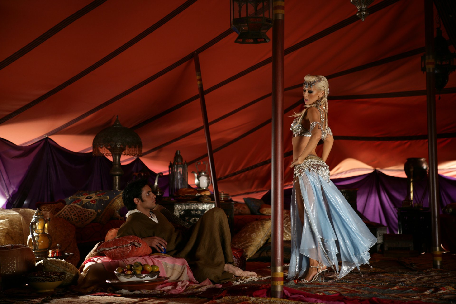 Ragazza in giacca rossa e costume da bagno che ballaRagazza in giacca rossa e costume da bagno che balla