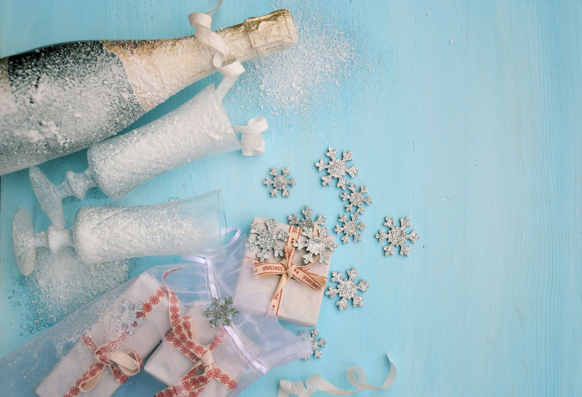 Carta da parati natalizia con bottiglia e bicchieriCarta da parati natalizia con bottiglia e bicchieri