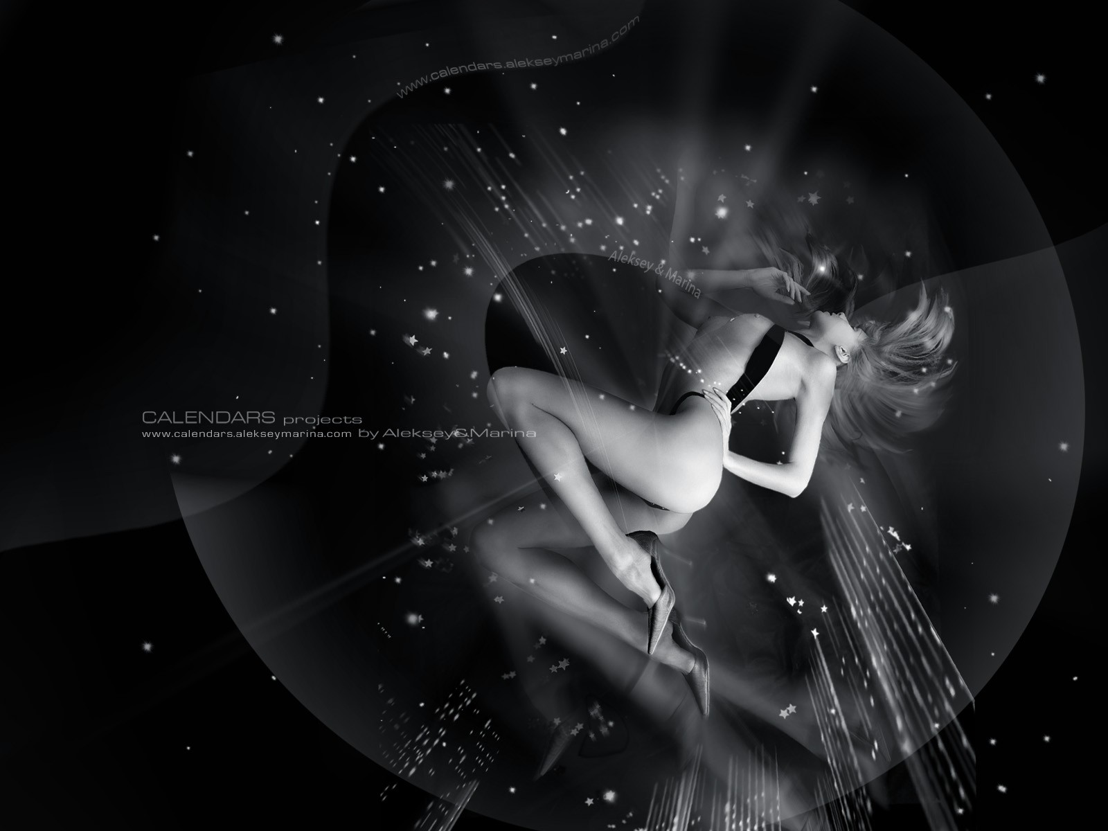 Arte con una ragazza nuda sullo sfondo di stelle e divorziArte con una ragazza nuda sullo sfondo di stelle e divorzi