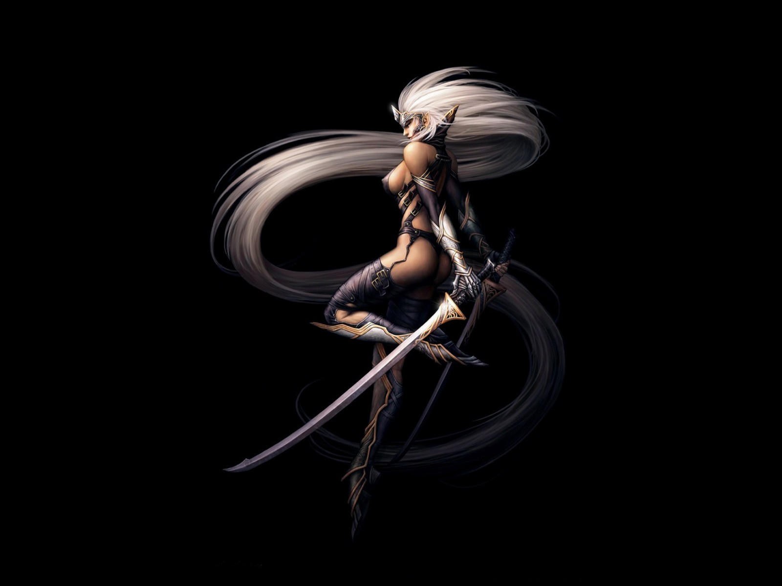 Fata elfo con armi e capelli lunghi