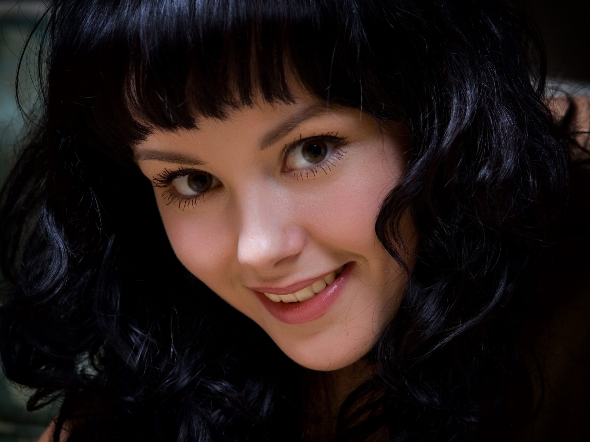 Foto di scarlett johansson sorridente in abito trasparente lillaFoto di Scarlett Johansson sorridente in abito trasparente lilla