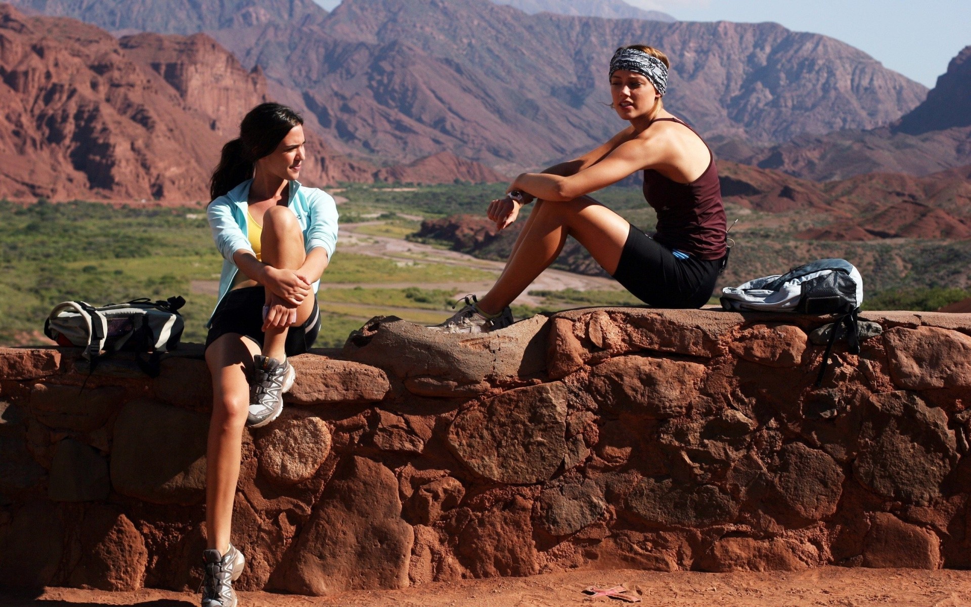 Le due ragazze si sedettero per riposare sulle rocce. frammento del filmLe due ragazze si sedettero per riposare sulle rocce. frammento del film