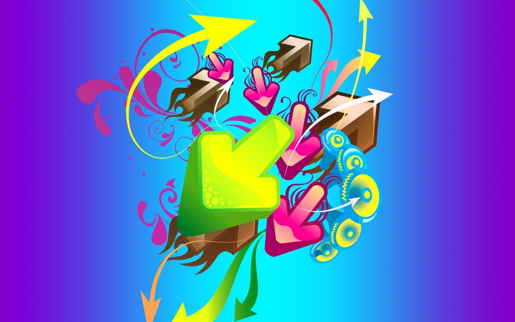 Linee luminose caotiche con frecce su sfondo viola acquaLinee luminose caotiche con frecce su sfondo viola acqua