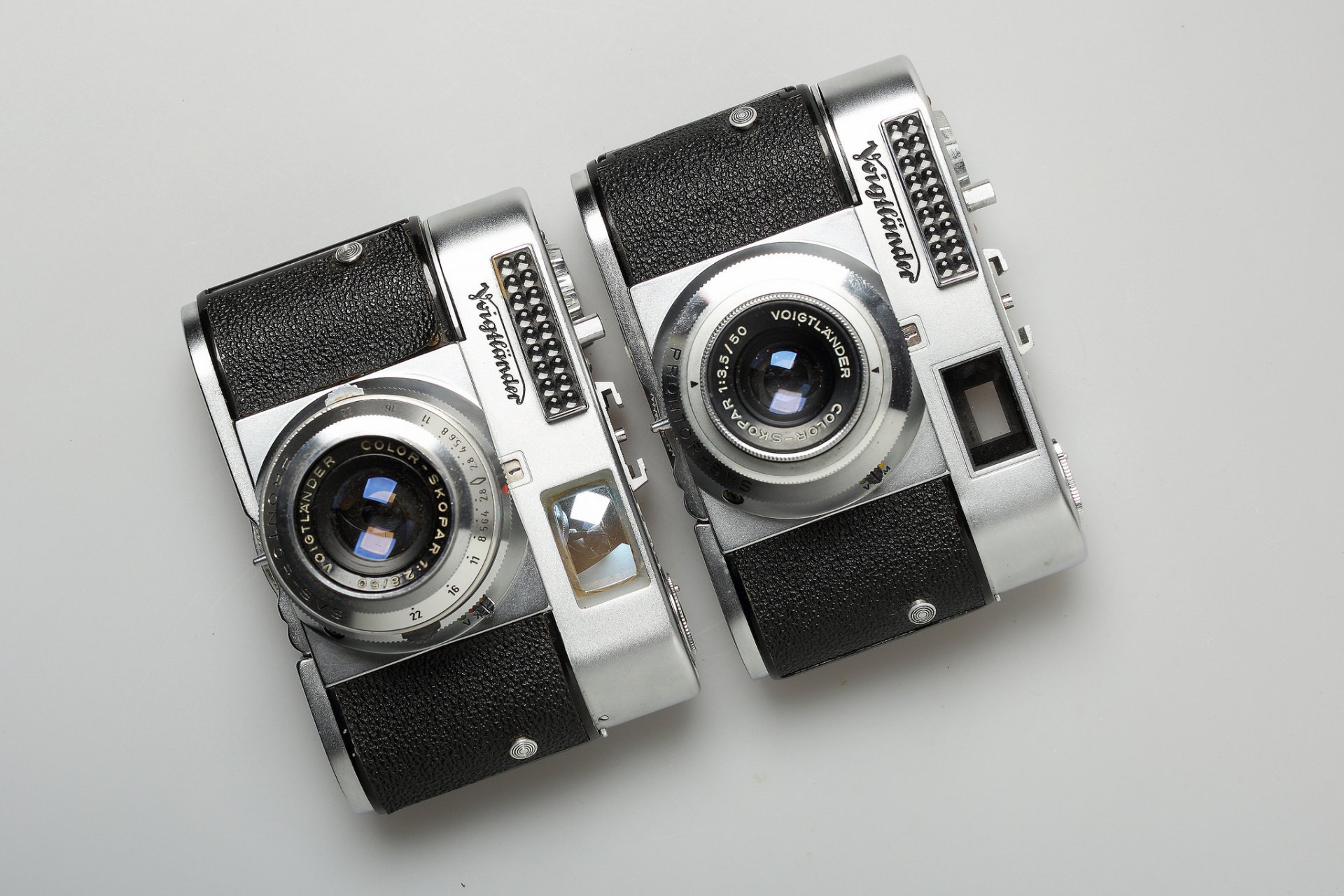 Coppia di telecamere macro su uno sfondo grigio monotonoCoppia di telecamere Macro su uno sfondo grigio monotono