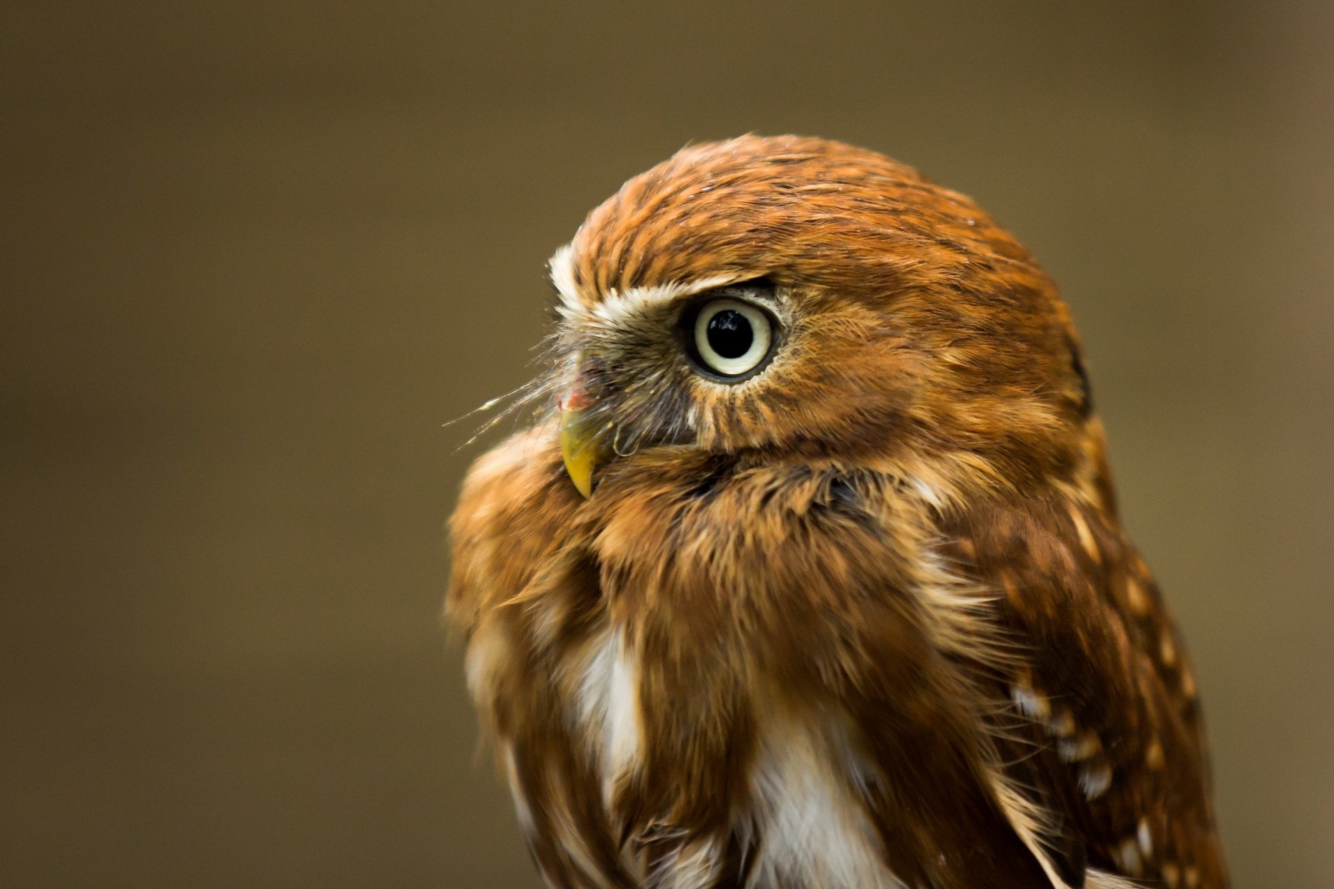 Il gufo ha chiuso le ali in volo sopra la foresta