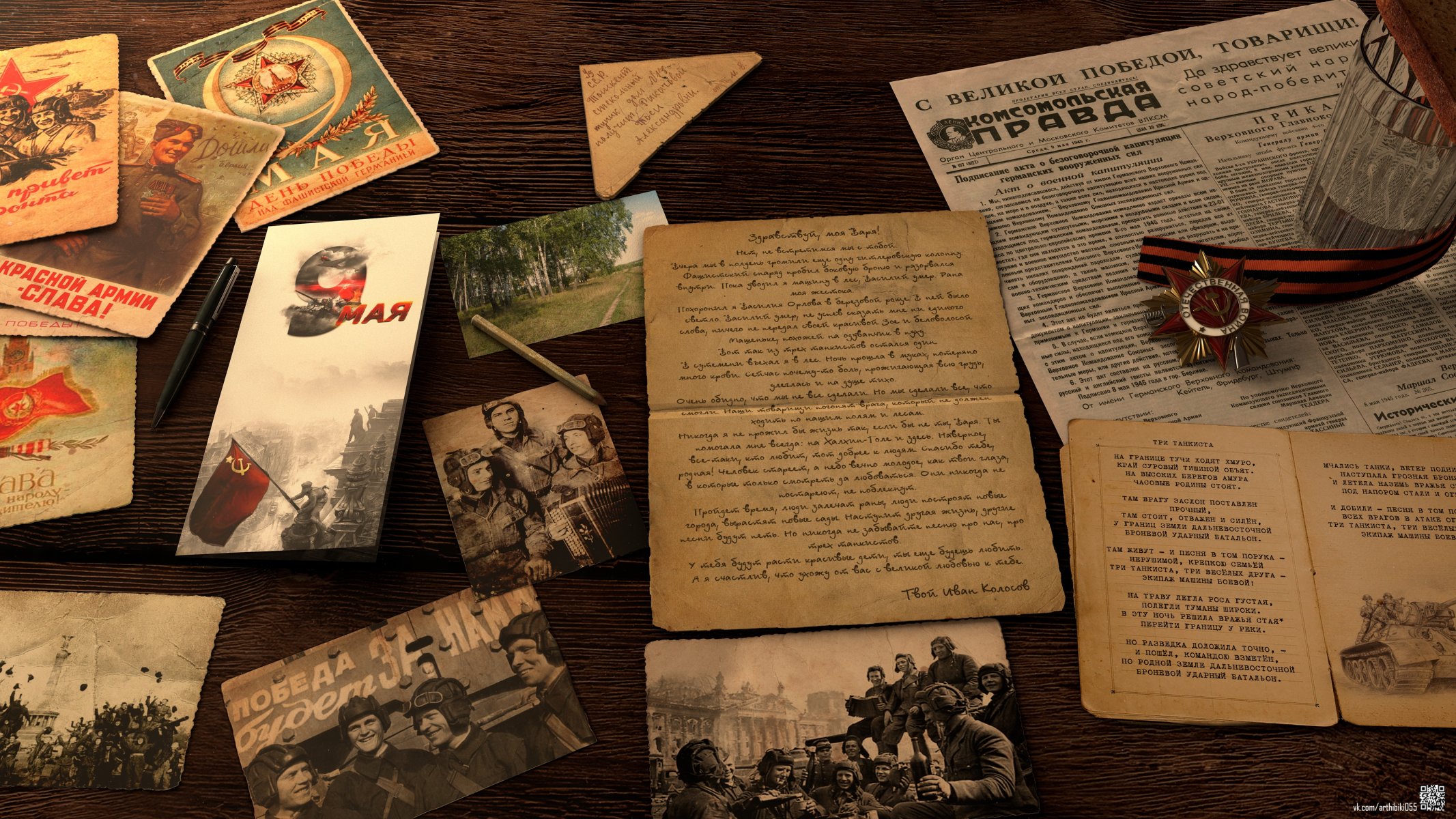 Vintage lettere militari e foto sul tavolo