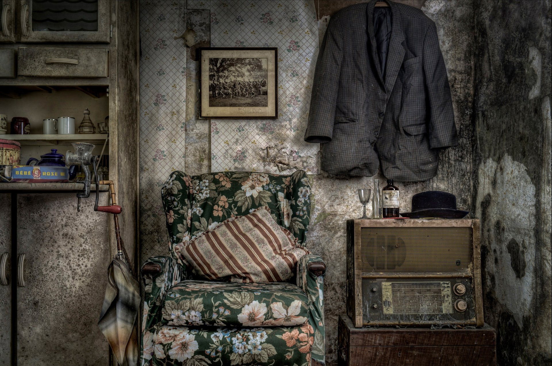 Interno vintage con poltrona e radio