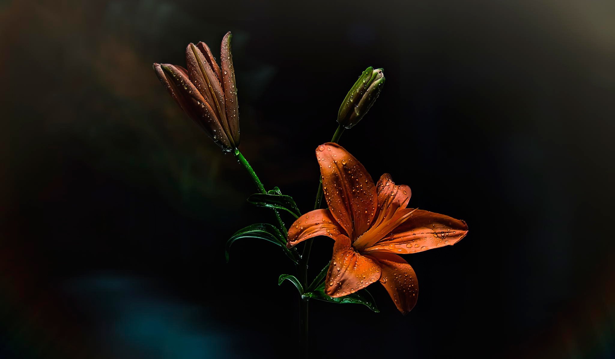 Giglio rosso in gocce di rugiada
