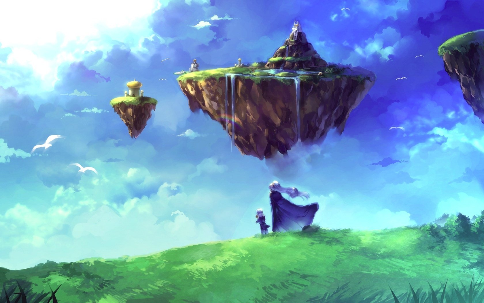 Piccole isole che volano sugli ombrelli tra le nuvolePiccole isole che volano sugli ombrelli tra le nuvole