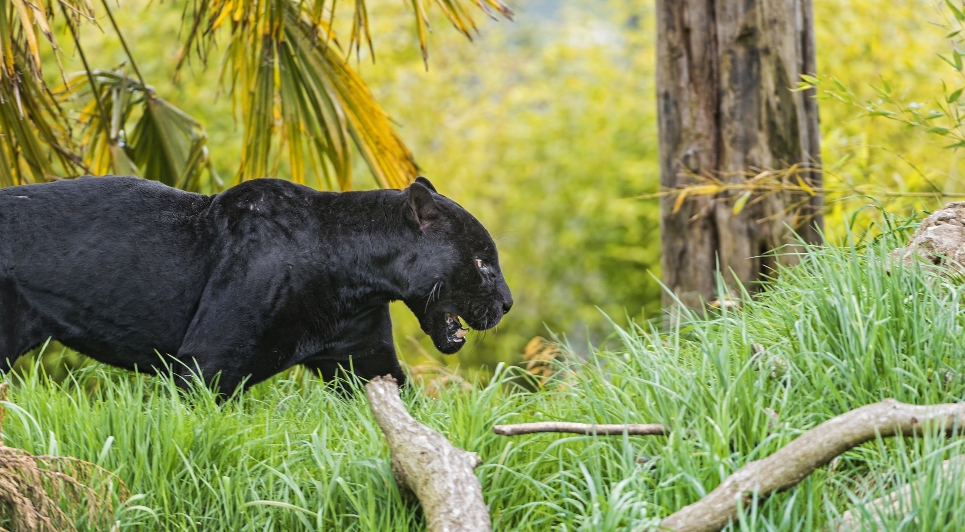 Immagine in bianco e nero con l immagine di un giaguaro sbadigliante