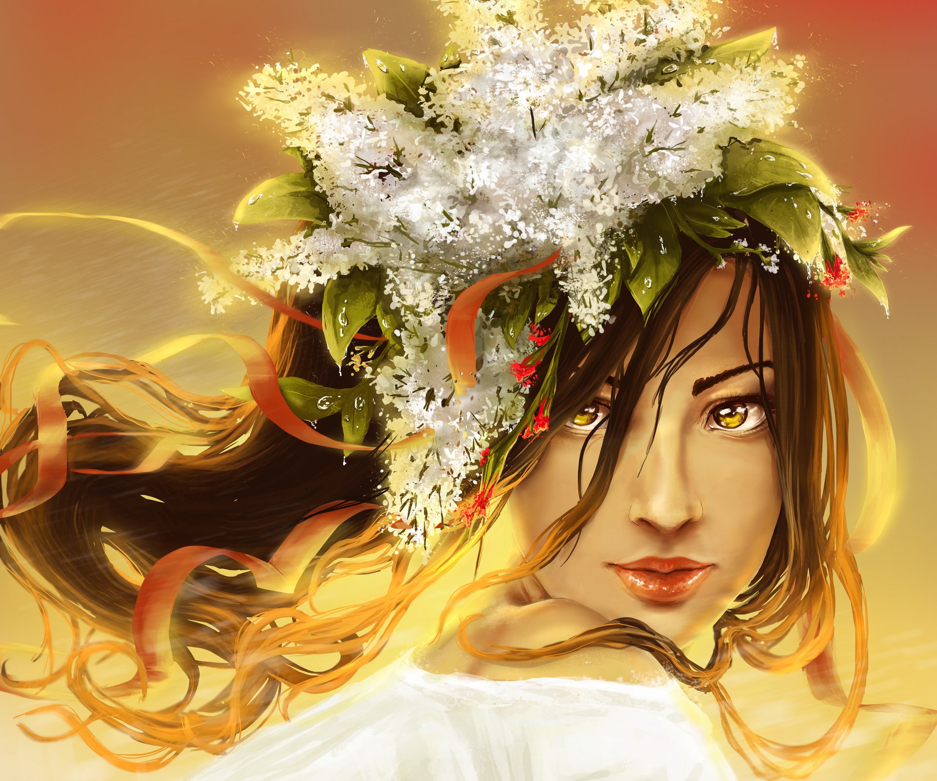 Immagine di una ragazza con una corona di lillà in testaImmagine di una ragazza con una corona di lillà in testa