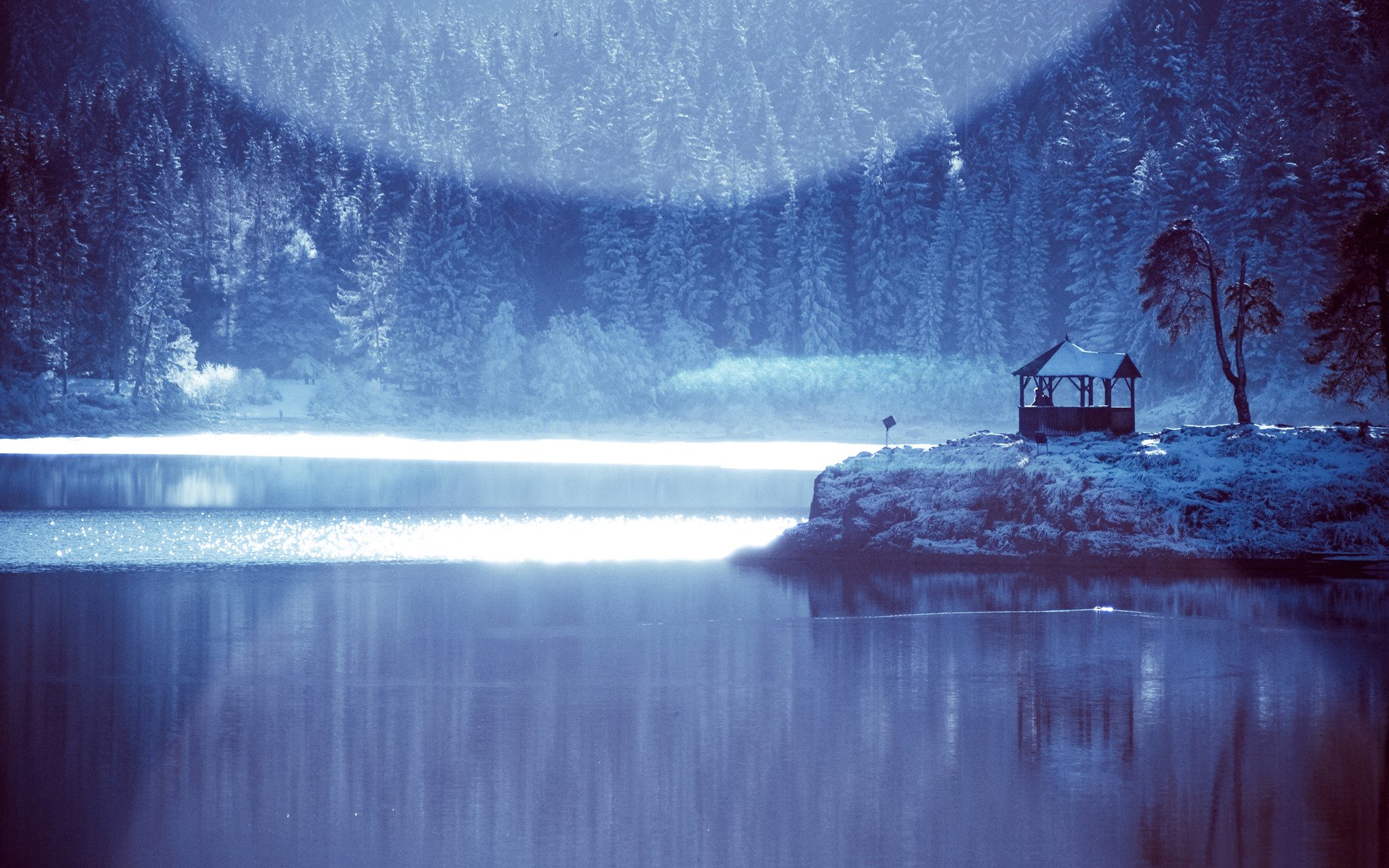 La bellezza della natura riflette montagne e alberiLa bellezza della natura riflette montagne e alberi