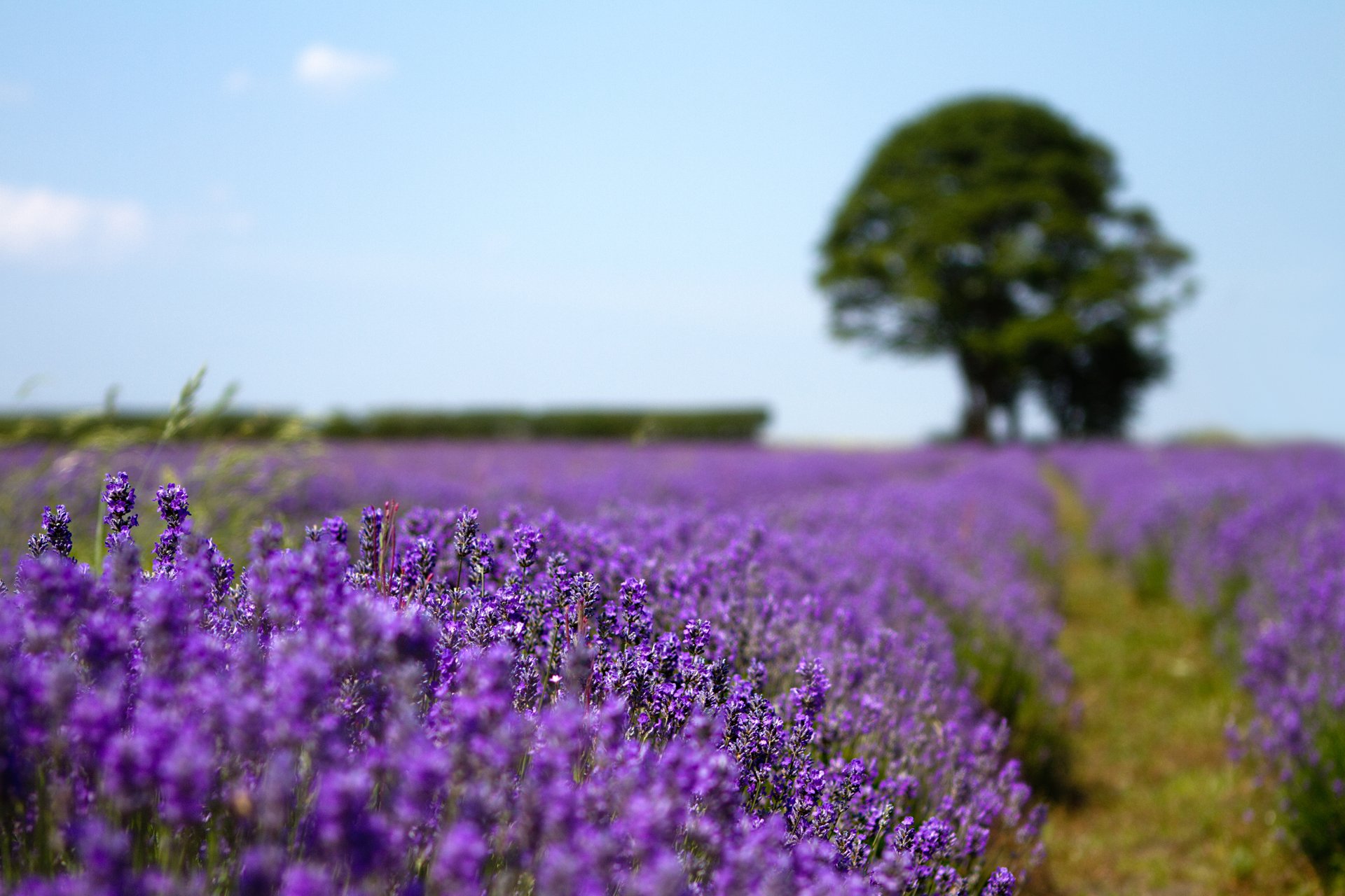 Campo di lavanda in fiore in una limpida giornata estivaCampo di lavanda in fiore in una limpida giornata estiva