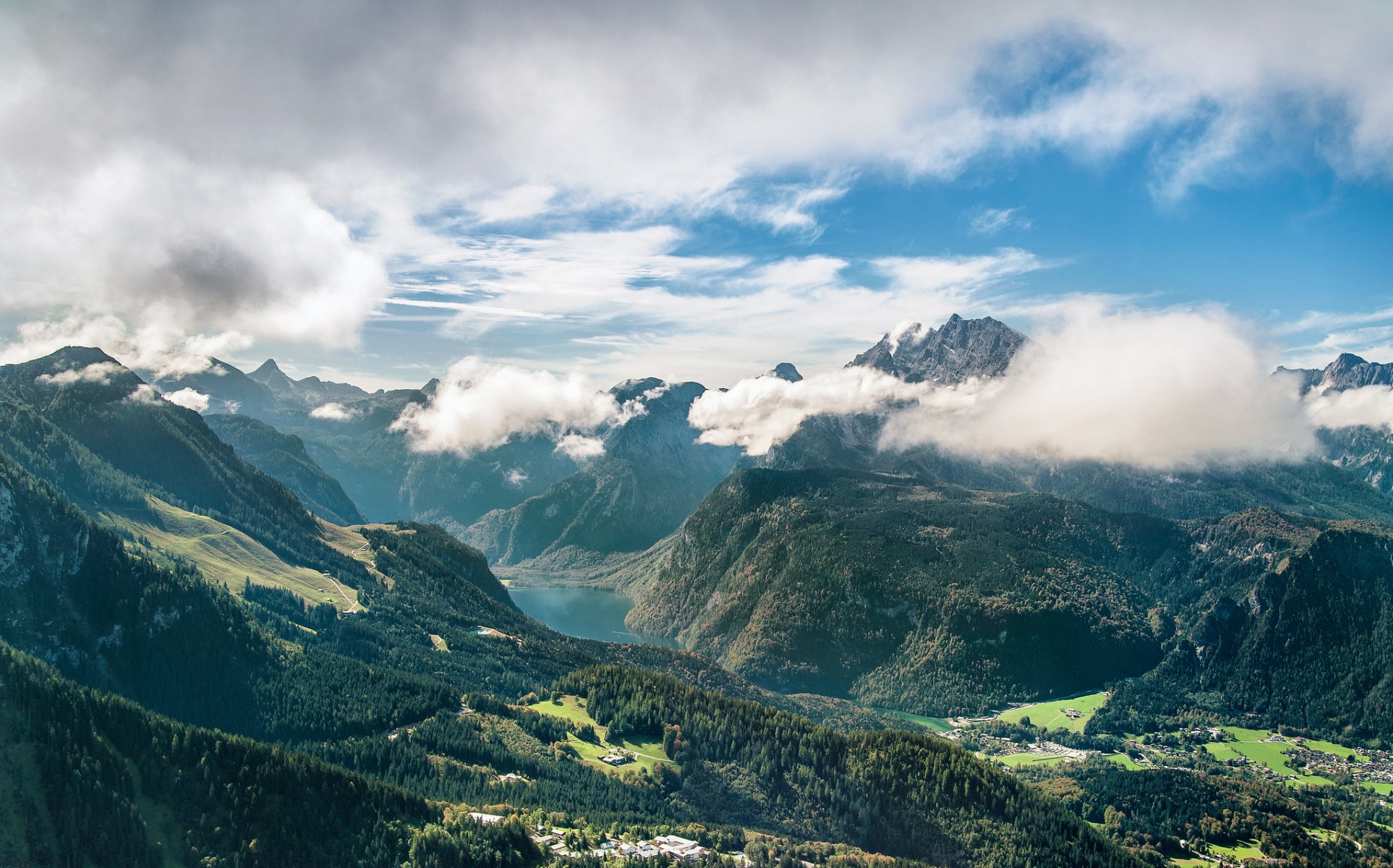 Immagine di un paesaggio mattutino e un ragno su una ragnatelaImmagine di un paesaggio mattutino e un ragno su una ragnatela