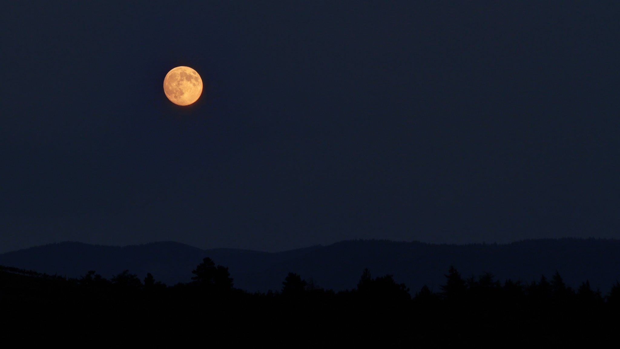 Una ragazza sul tetto di una casa di notte guarda la luna