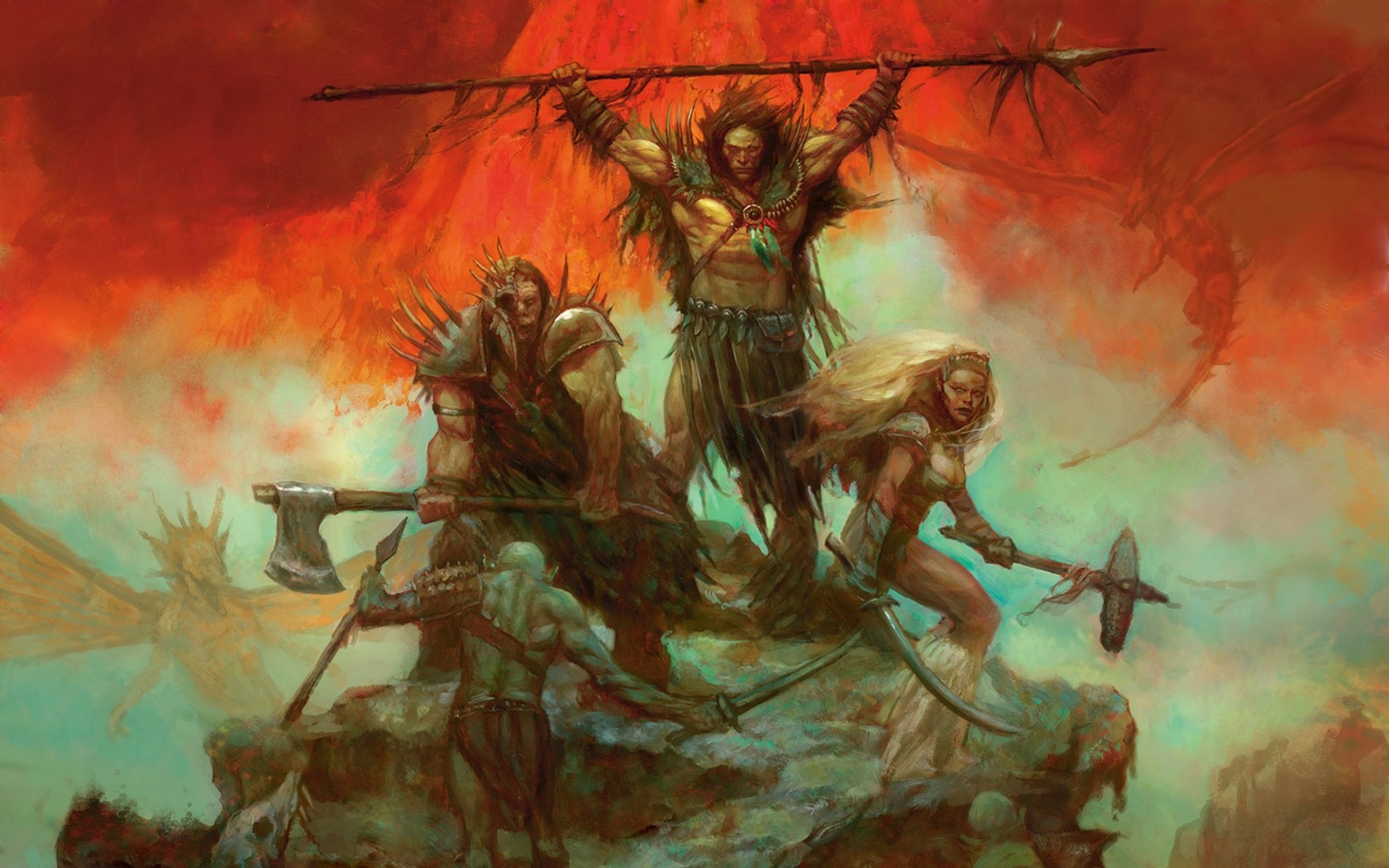 Ragazza nella foresta accanto all'animale in abito neroRagazza nella foresta accanto all'animale in abito nero