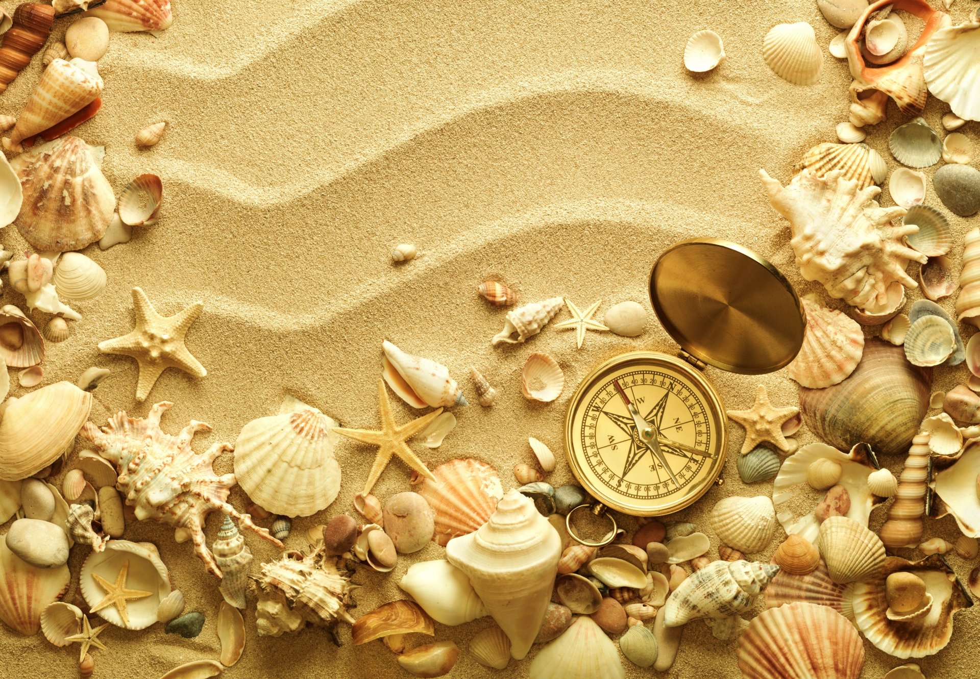 Sulla spiaggia conchiglie e stelle marine nella sabbia