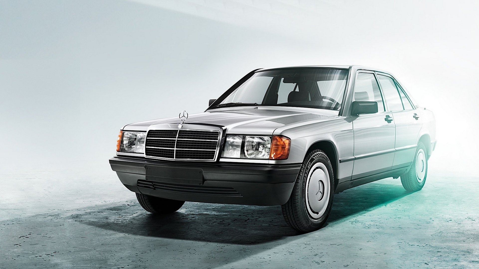 Mercedes-benz su asfalto bagnato contro un muro di cementoMercedes-Benz su asfalto bagnato contro un muro di cemento
