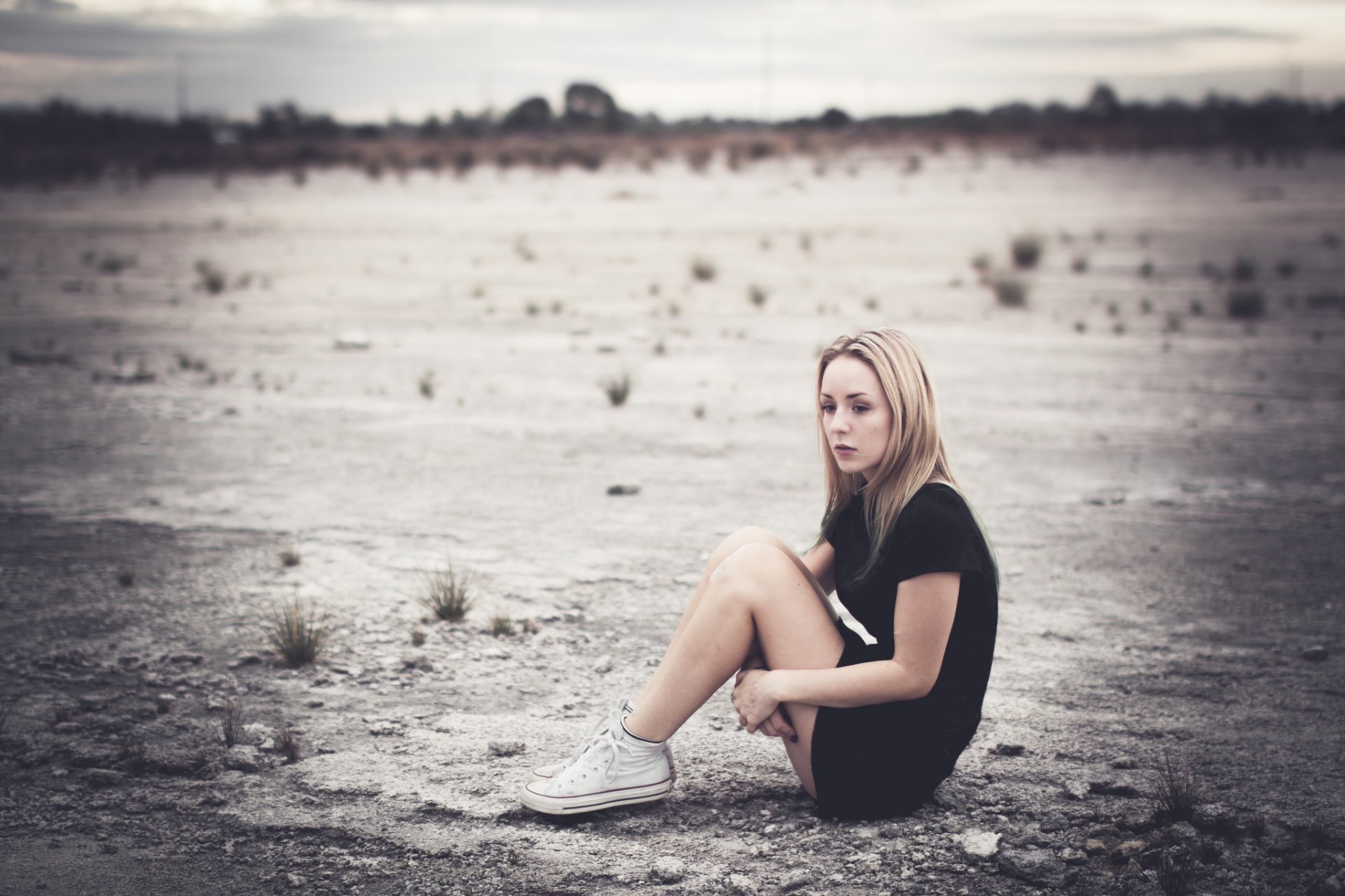 Ragazza solitaria in mezzo a una strada deserta