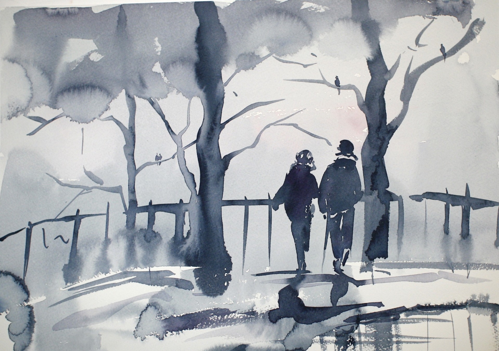 Foto in stile minimalista realizzato con alta, un uomo che cammina sulla neve