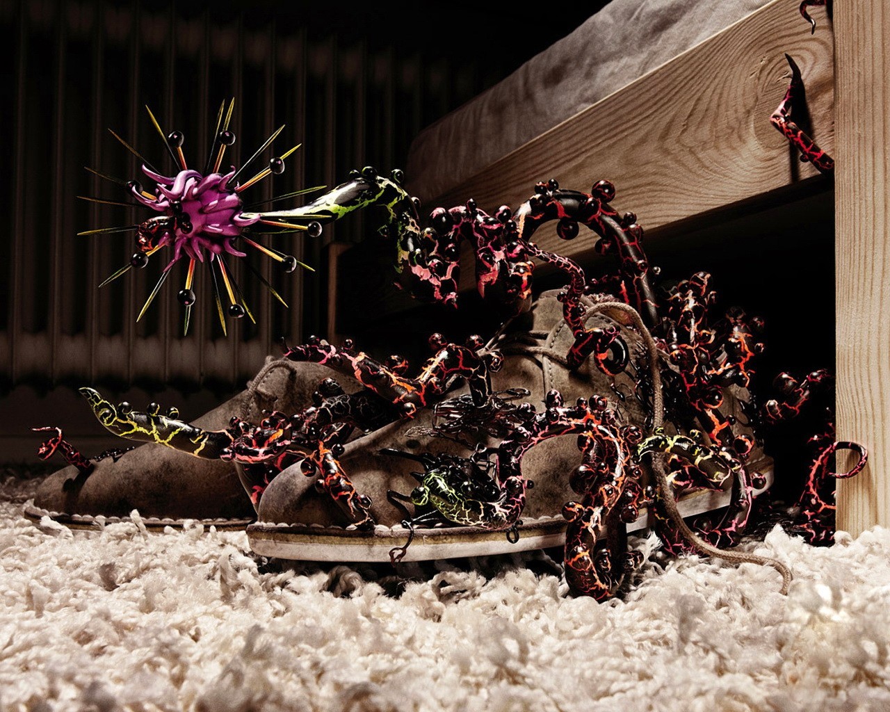 Mostro lungo sulle scarpe