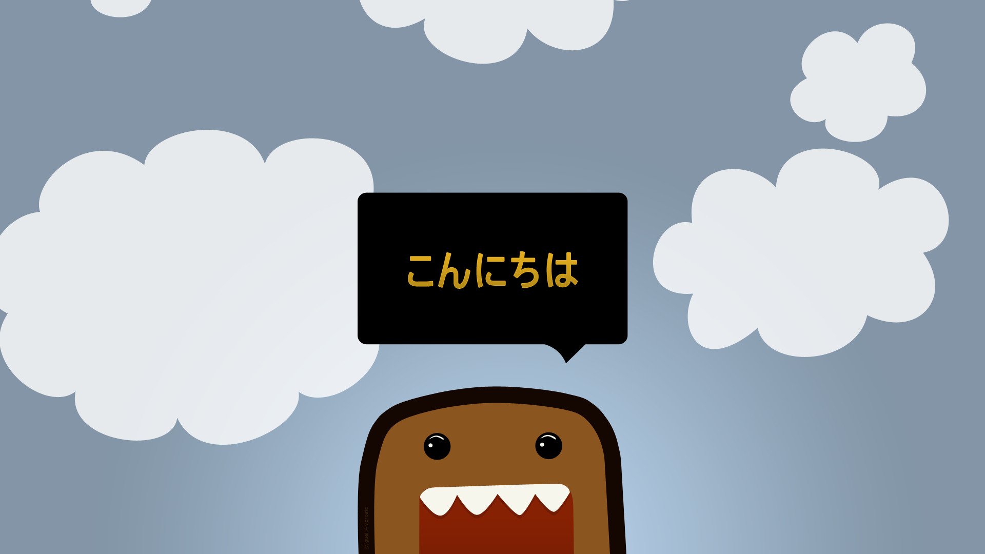 Personaggio con i denti su uno sfondo di nuvole e cieloPersonaggio con i denti su uno sfondo di nuvole e cielo