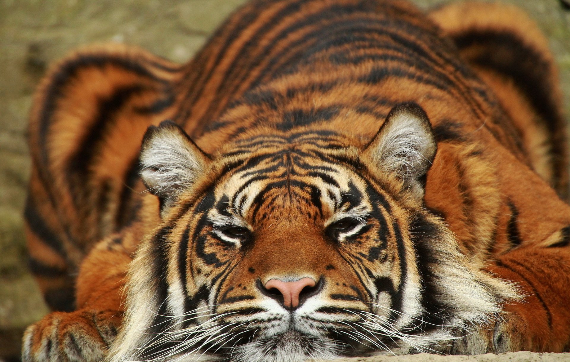 La tigre dorme tranquillamente sotto i raggi del soleLa tigre dorme tranquillamente sotto i raggi del sole