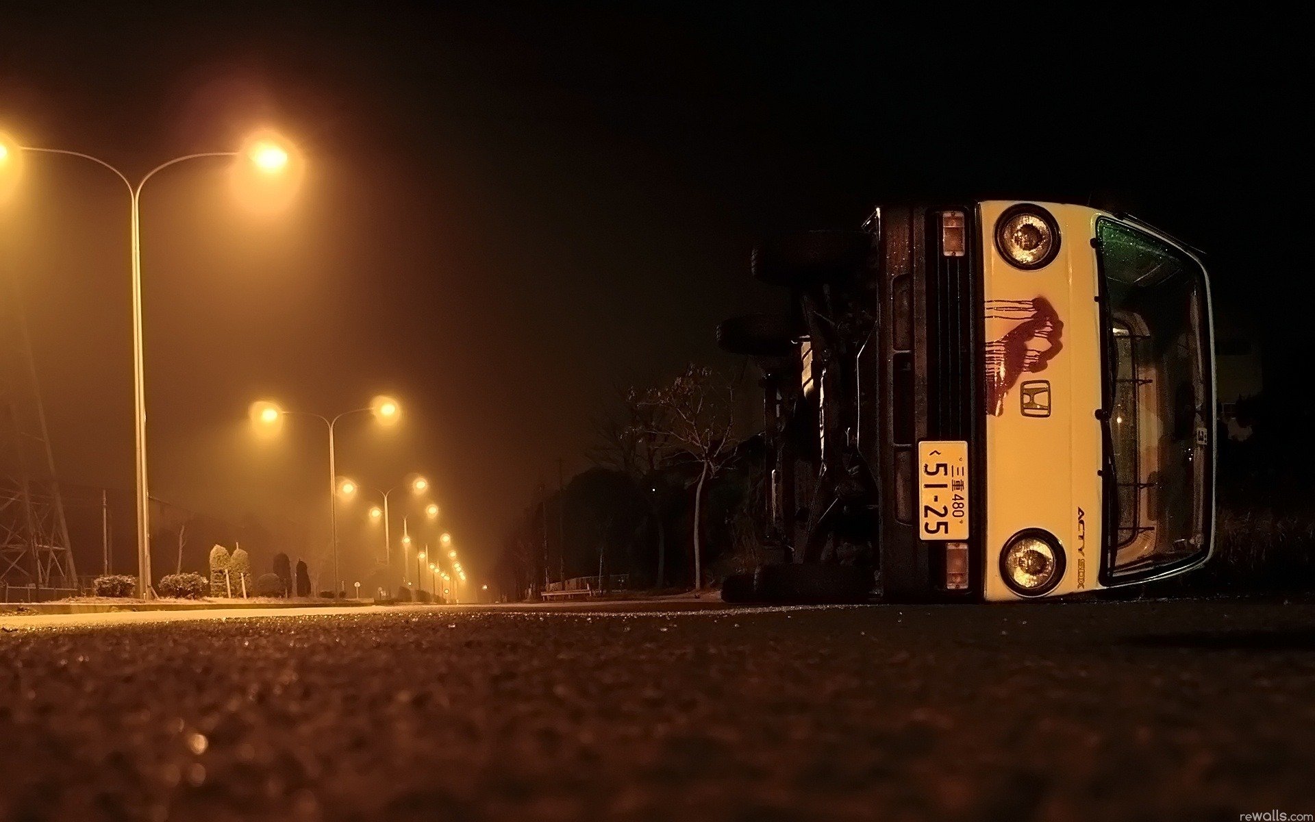 L'autobus giace su un fianco sulla strada