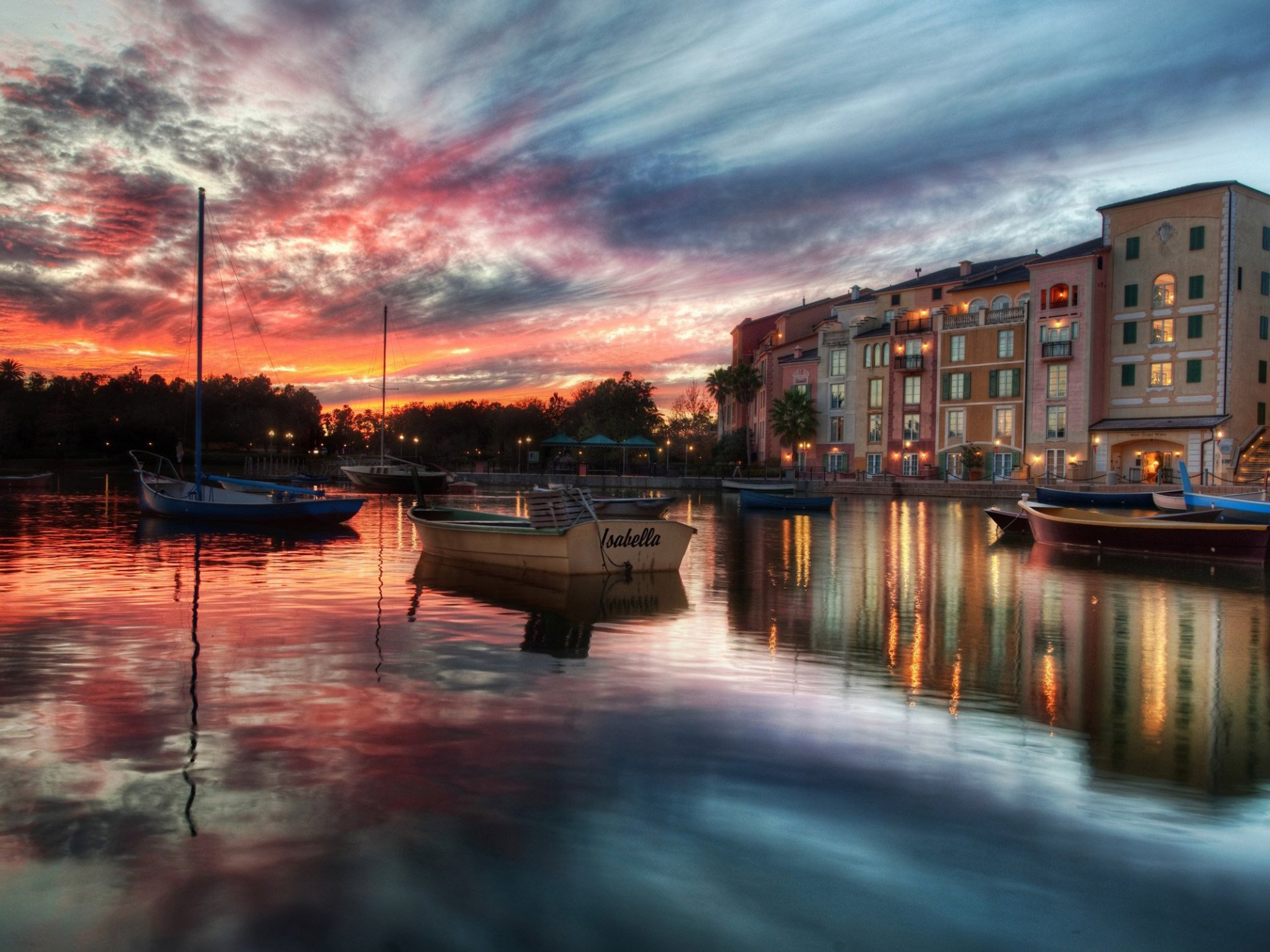 Cielo straordinario e case nel riflesso dell'acquaCielo straordinario e case nel riflesso dell'acqua