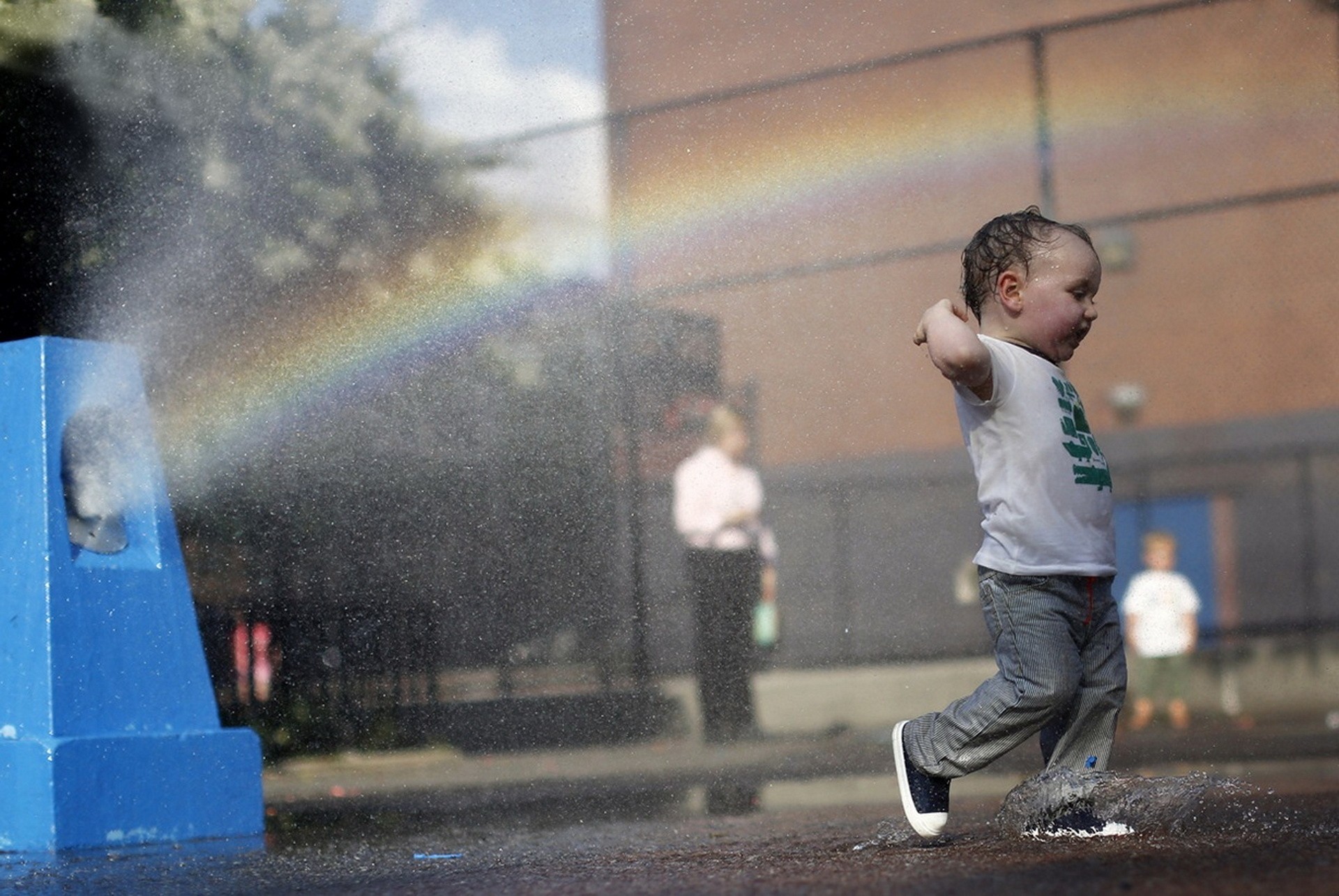 Un bambino con un giocattolo in mano guarda in lontananza verso il tramontoUn bambino con un giocattolo in mano guarda in lontananza verso il tramonto