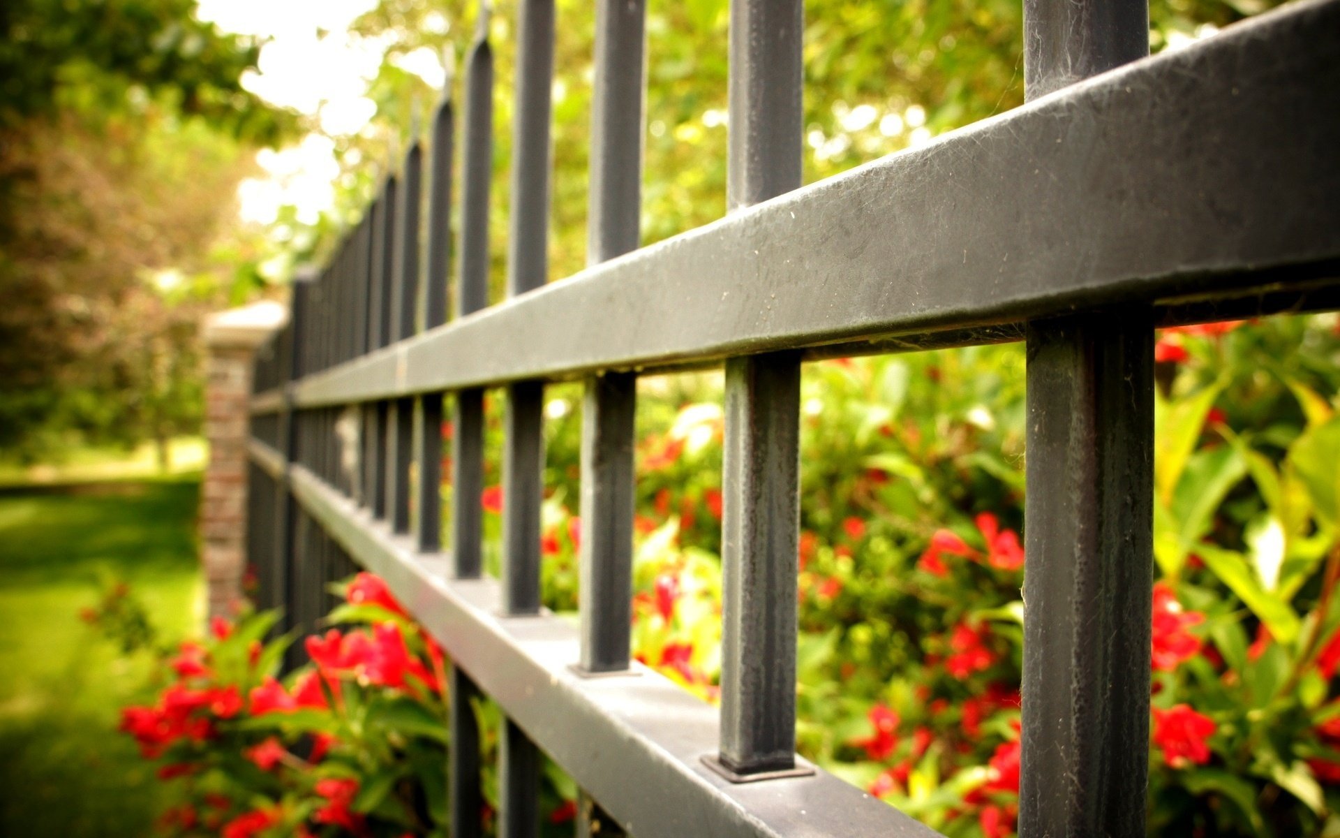 Una recinzione a gabbia racchiude un arbusto fioritoUna recinzione a gabbia racchiude un arbusto fiorito